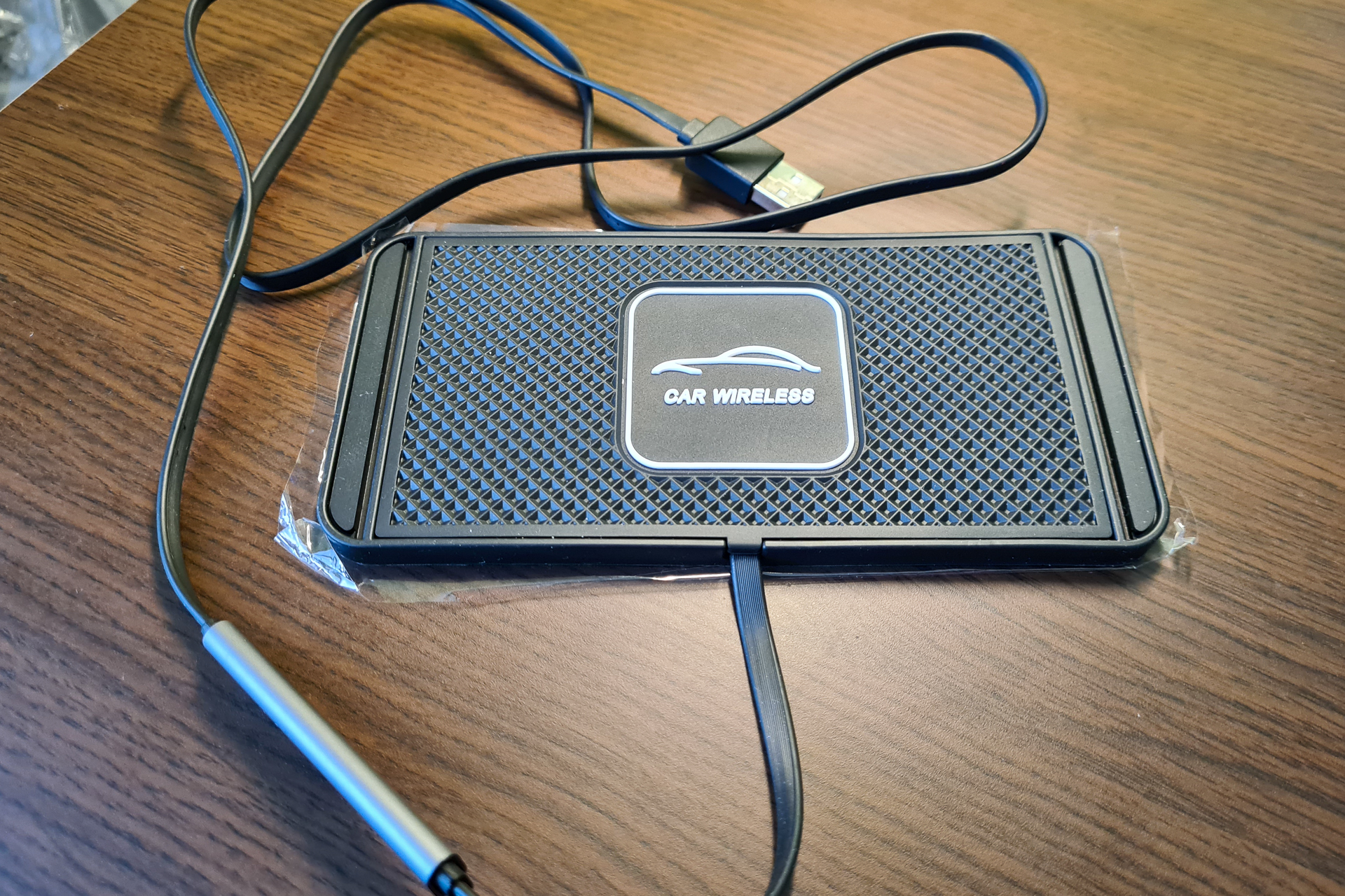 Keďže po zaobstaraní si modulu na bezdrôtové AndroidAuto sa vyskytovali problémy s výdržou baterky nášho mobilu, na fóre Škodahome sme sa nechali inšpirovať bezdrôtovou nabíjačkou. Objednali sme tento kúsok z AliExpress.