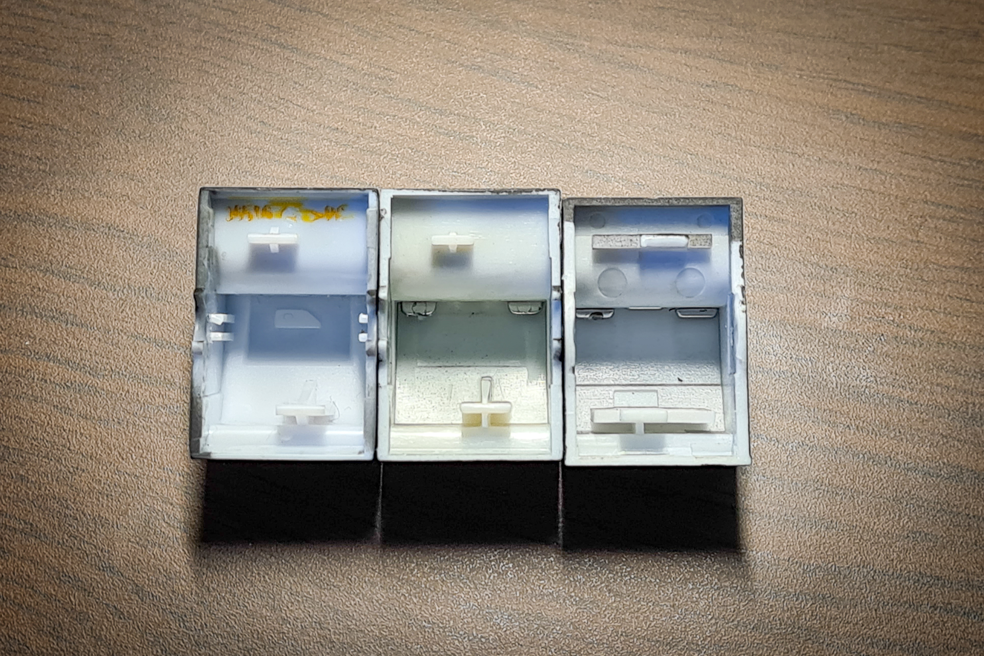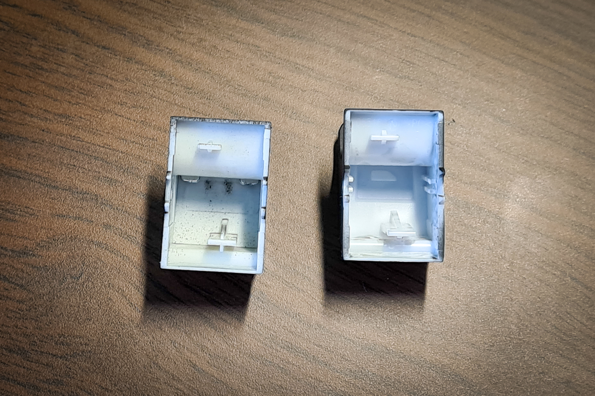 Zatiaľ sme na skúšku vzali iba 3 kúsky. A asi sme urobili dobre, pretože nastalo nemilé prekvapenie. Keď to minulý rok objednával @miklisek mal vnútro vrchného dielu identické ako na originálnom diely. My ho už máme trochu iné a tak nedrží na originálnych ovládačoch a teda už mi nestačí len prehodiť horné diely (Škodahome).