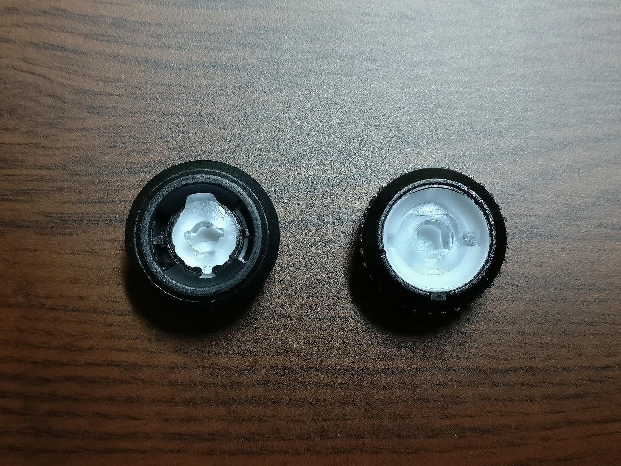 Problém však je, že dierka v novom kolečku je menšia a inak tvarovaná ako v tom pôvodnom. Pôvodná tyčka je hrubšia, z jednej strany hranatá a z druhej zaoblená, čiže to nepasuje. Nechcel som zase tlačiť nasilu, aby som tú tyčku neurval. Nakoniec veľká vďaka patrí wirerovi, ktorý si našiel čas vyšprtať do čudlíka väčšiu dieru a zároveň dal tip, akým spôsobom ho upevniť na svoje miesto. S výsledkom nakoniec spokojnosť!