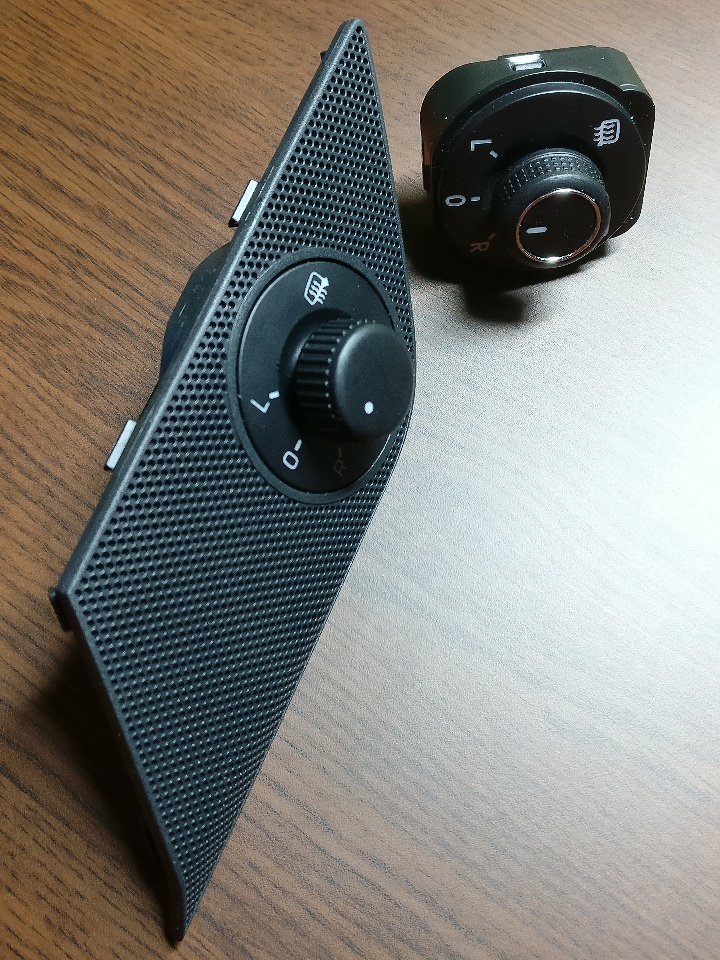 Ďalší experiment z AliExpressu – ovládač spätných zrkadiel z VW Polo R6 (6RD 959 565 D), ktorý má pekný ovládač v podobnom štýle ako sú ovládače na rádiu.