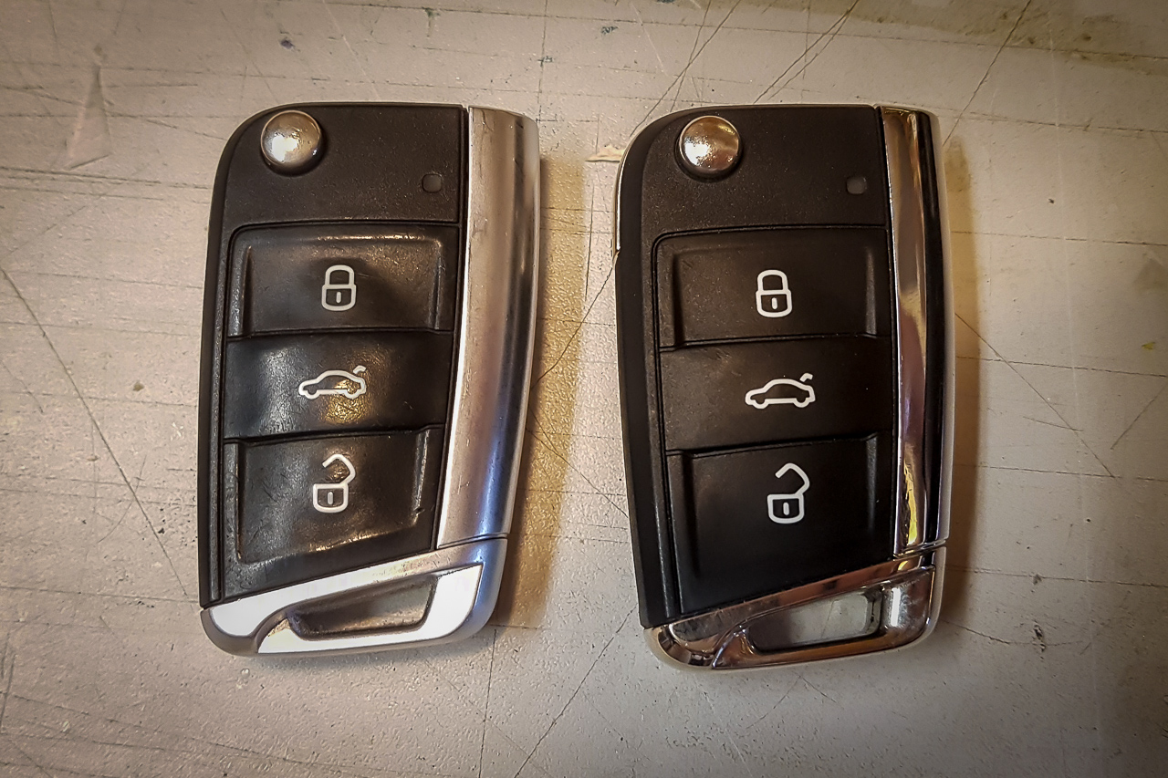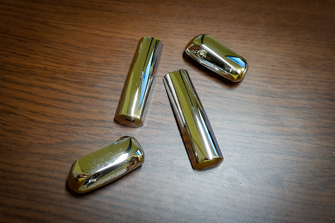 Podarilo sa mi získať aspoň jeden kus lesklého kovového dielu na bok kľúča. Už začiatkom roka som skúsil objednať tieto diely z AliExpressu, avšak mne už došli matné diely. Tie sa mi nepáčili, preto som ich posunul ďalej. Dnes sa mi však dostal do ruky ešte lesklý diel, ktorý na začiatku posielali. Nižšie aj porovnanie s matnými dielmi.