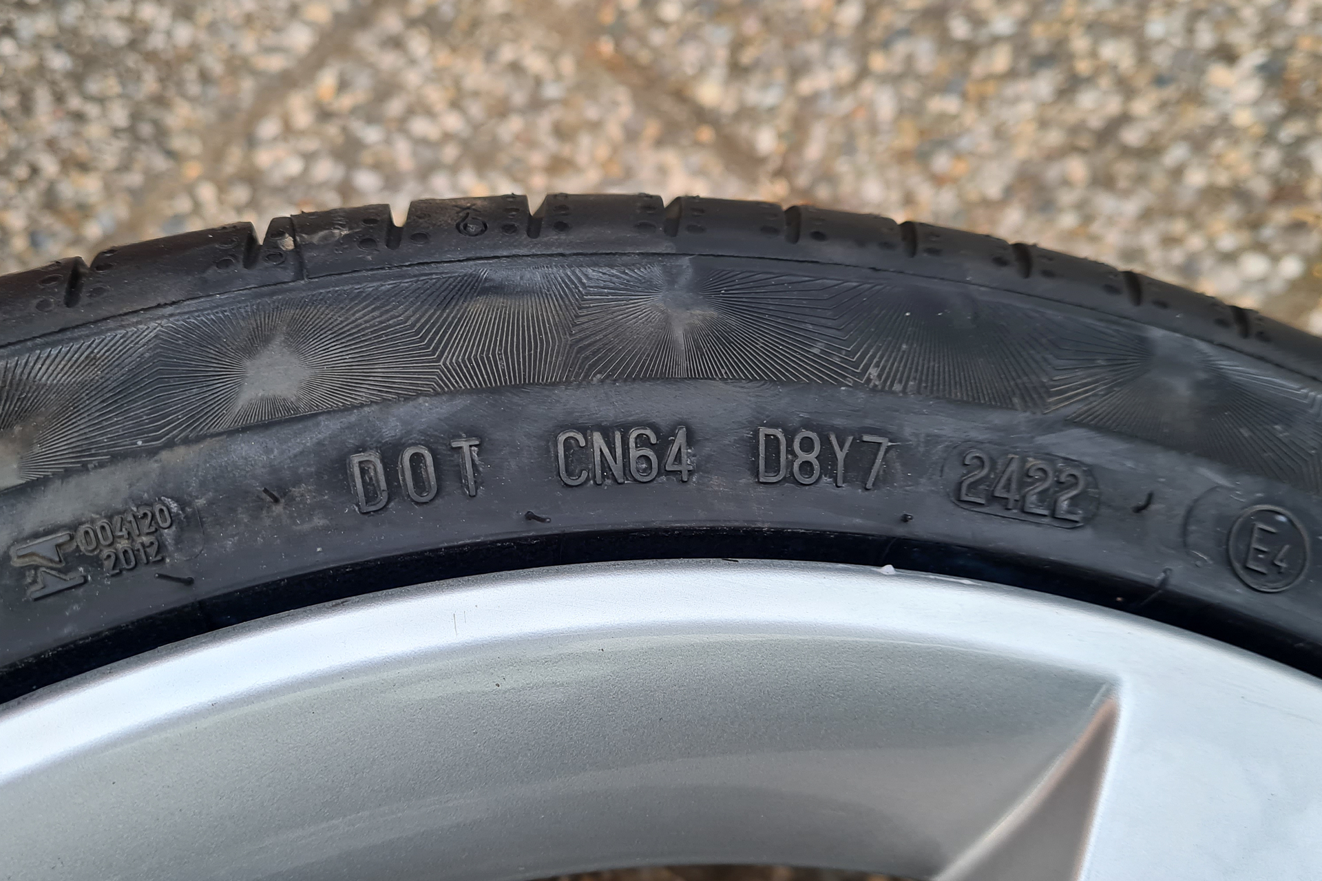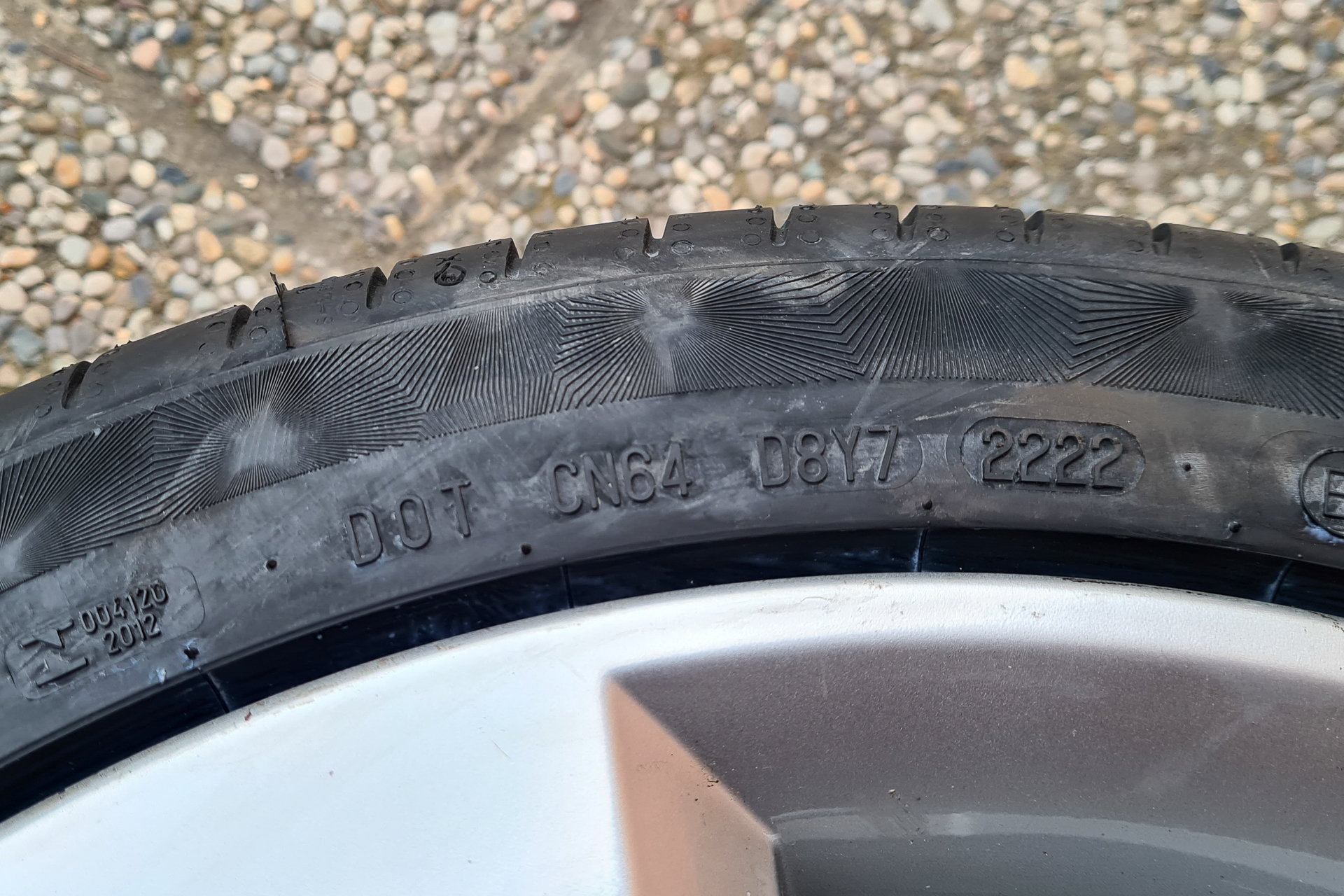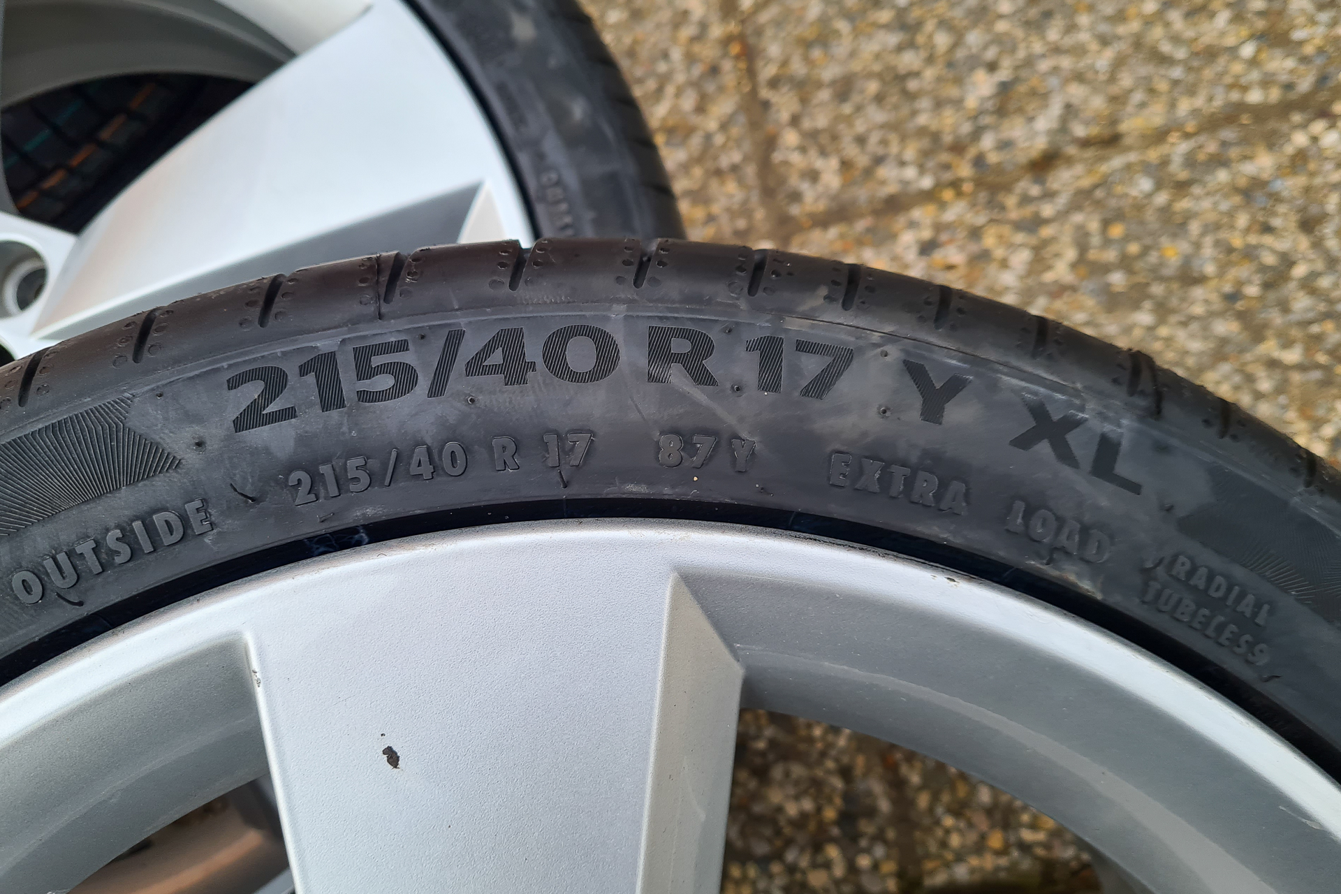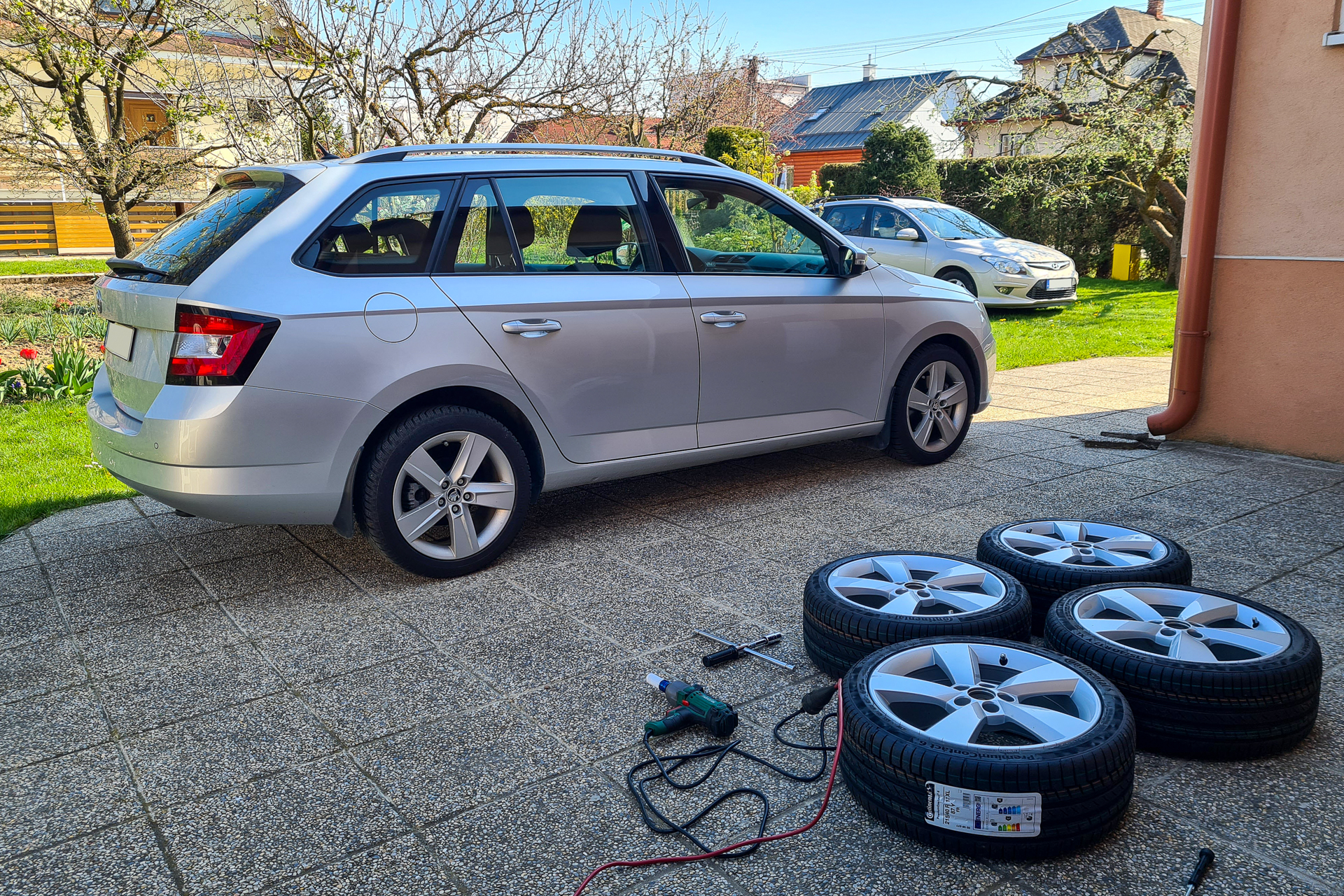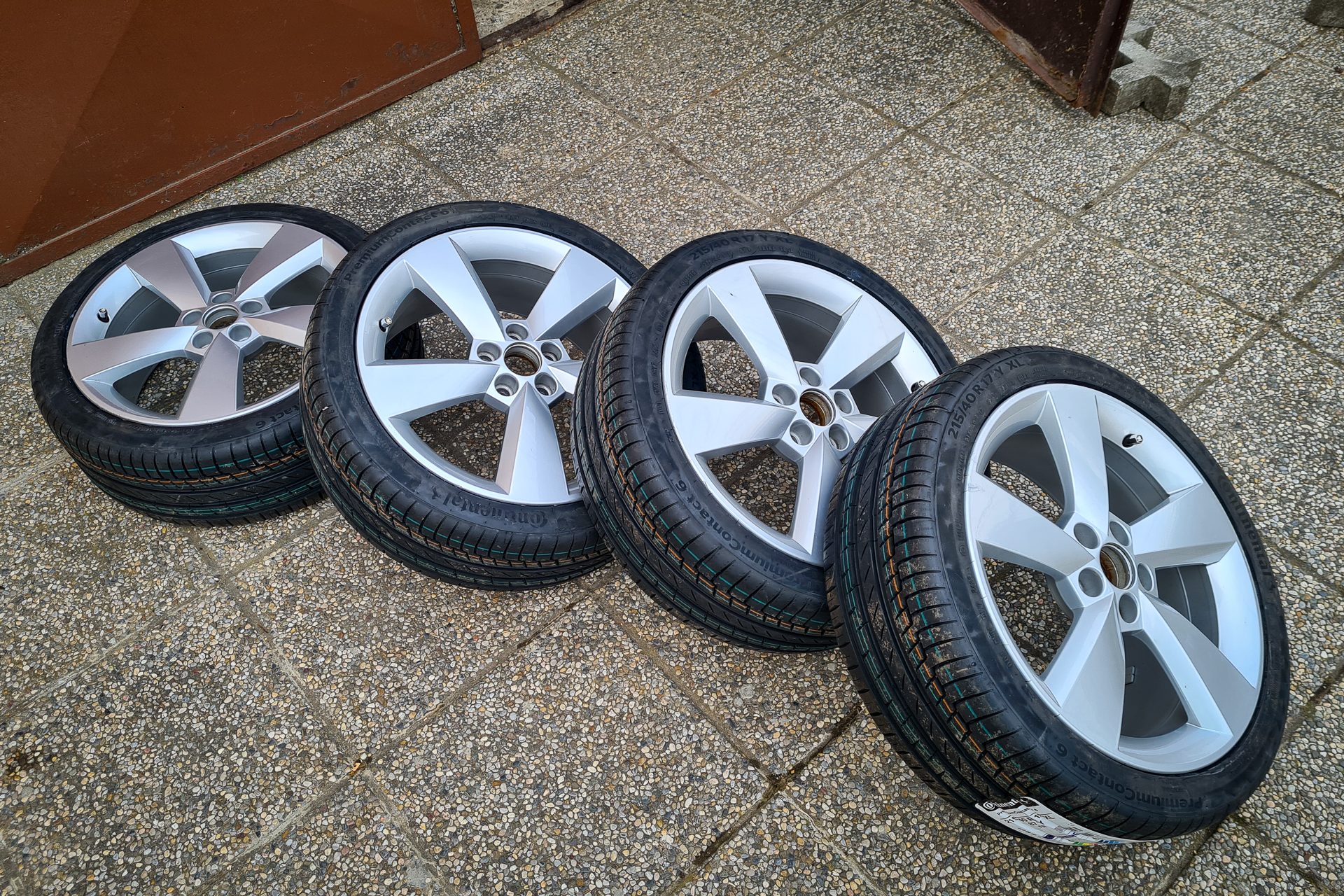 Pred mesiacom sme si vyzdvihli a rovno dali obuť nové letné pneumatiky na nadchádzajúcu letnú sezónu. Staré Goodyearky sme vymenili za Continental PremiumContact 6 215/45 R17 87Y XL FR, Made in France, DOT 1ks 2222 a 3ks 2422.