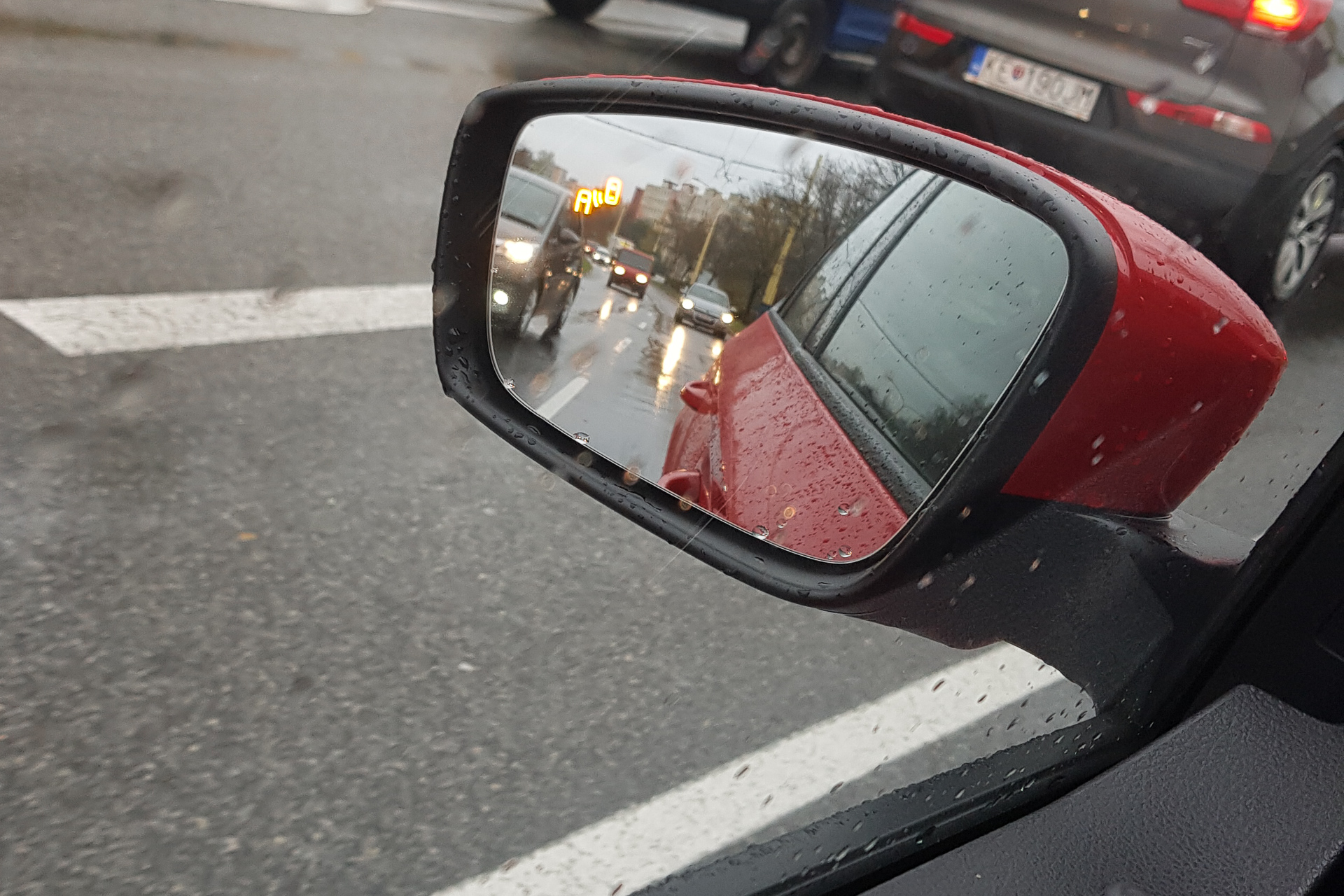 Mal som možnosť vyskúšať aj BSD (Blind Spot Detect – kontrola mŕtvych uhlov). Je to tiež skvelá funkcia a iba ma utvrdila, že ju musíme dorobiť aj do mojej Fabči. Pekne ma upozorňoval na autá v mŕtvom uhle, v prípade zapnutia smerovky začalo autíčko blikať. Hneď prvý deň som si vyskúšal aj RTA pri cúvaní z parkovacieho miesta. Presne ako na propagačnom videu – najskôr mi zapípalo na chodca a pár sekúnd na to na prechádzajúce auto.