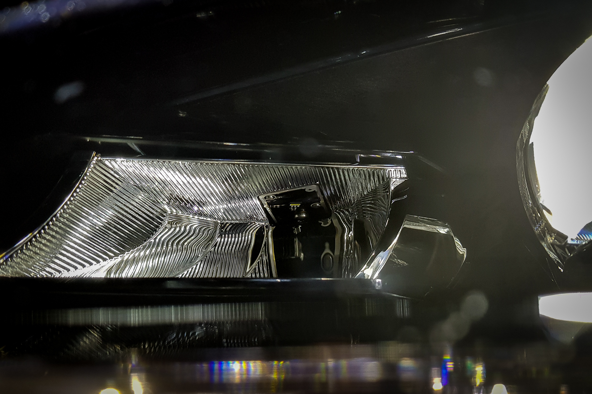 Predné svetlomety bi-LED je kapitola sama o sebe. Oproti mojim LED PJčkám to nebol až taký šok, ale sú určite lepšie. PJ svietia hlavne pred auto a ďalej ide svetlo dostratena. Originál LED svieti do väčšej vzdialenosti a aj do šírky takmer stále rovnakou intenzitou. Je tam stále ostrá hrana medzi tmou a svetlom. Bolo strašne zaujímavé ísť úzkou uličkou a vidieť ako svetlo reže steny. Na mojich LED PJčkách ide svetlo viac dostratena. Zároveň som sa upokojil, keď som videl ako pri prejazde nerovností svetlo lieta hore-dole úplne rovnako na aute s automatickou niveláciou ako bez nej. Veľmi skvelá funkcia je aj prisvecovanie do zákrut priamo vo svetlách. Po ceste mám viac väčších križovatiek, na ktorých mi to svetlo nádherne osvetlilo aj veľkú časť priľahlého chodníka a chodcov na ňom. Corner hmlovky osvetľujú iba obrubník. A prekvapením bolo, že aj napriek takmer neustálemu dažďu a chladu sa predné svetlá vôbec nezarosili ani v okolí denného LED pásika.