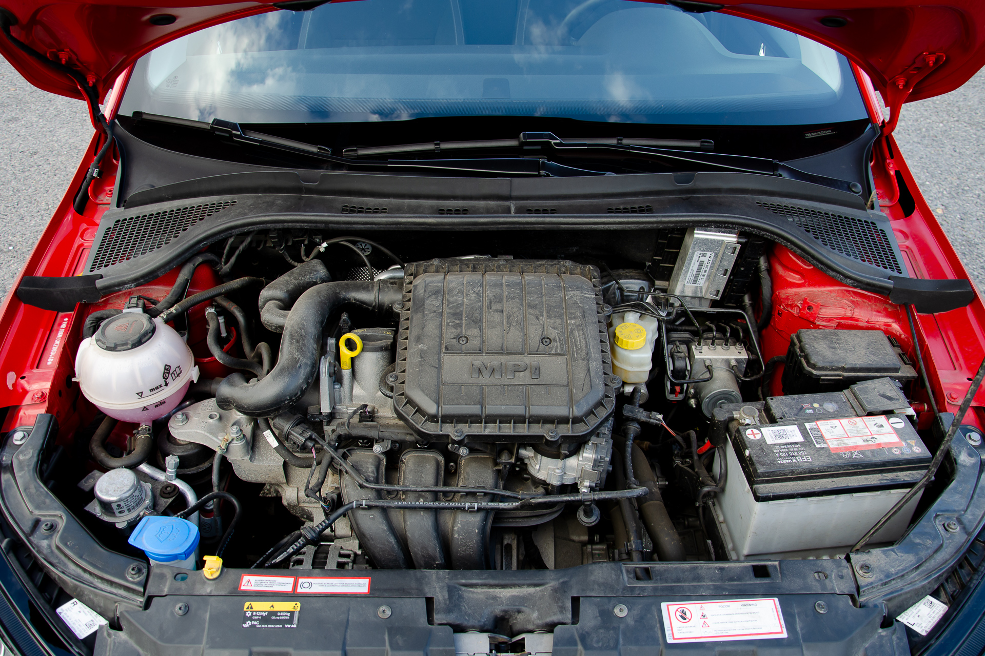 Motor MPI 55kW nenadchol, ale po meste ani nesklamal. Len bolo potrebné si na neho zvyknúť. Na začiatku mi chýbalo turbo, stlačil som plyn a nič sa nestalo. Zo zvyku som radil podľa hluku ako na svojom TSI a tak sa často stávalo, že na 70ke som miesto obvyklých 80 šiel v skutočnosti len 60. Ale po pár dňoch som sa prispôsobil a zvykol. Najdlhšie som musel bojovať so spiatočkou, ktorá sa na rozdiel od TSI radí do opačnej strany – nie dole a do jednotky, ale dole a do šestky. V otáčkach okolo 2000-3000 bol hluk motora celkom ok, ale nad 3000 už to začalo hučať ako HTP, snáď ani netreba spomínať, že auto odporúčalo radiť prevodové stupne tak, aby otáčky boli stále pod 2000. Toto sa však takmer vôbec nedalo praktizovať. Moja spotreba po 12 dňoch a 340 km bola 7,4l/100 km – takže nič moc. Avšak celú dobu som jazdil iba po meste. Nezvyk bola aj ručná brzda, ktorú bolo potrebné viac vyťahovať ako na mojom TSI – asi záležitosť bubnov vzadu.