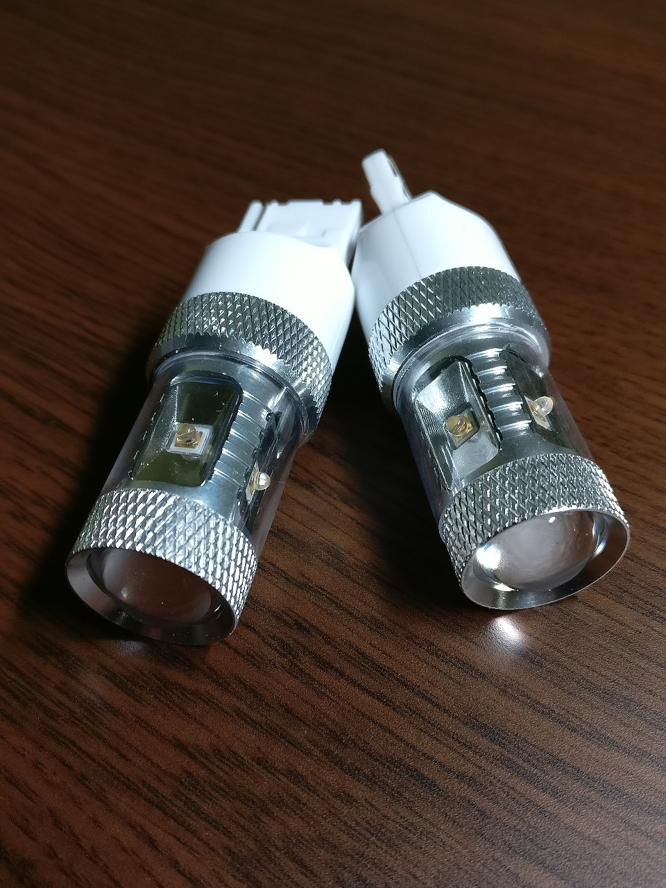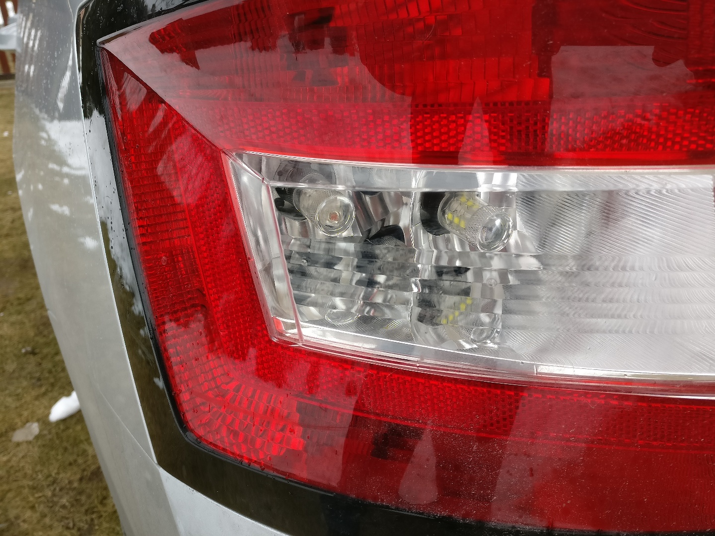 Ešte vo februári sme nahodili LEDky do zadných smeroviek (BAU15s) a zároveň aj spiatočky (BA15s). Mierny UFO dizajn, ale mne sa celkom páči. Blinkre fungujú fajn, ale spiatočky klasicky hlásia chybu. Neviem, či tú chybu zrušiť cez kódovanie alebo ísť cestou rezistorov. V podstate by ich malo stačiť nacvaknúť na káble, len neviem, či sa nepoškodia káble.