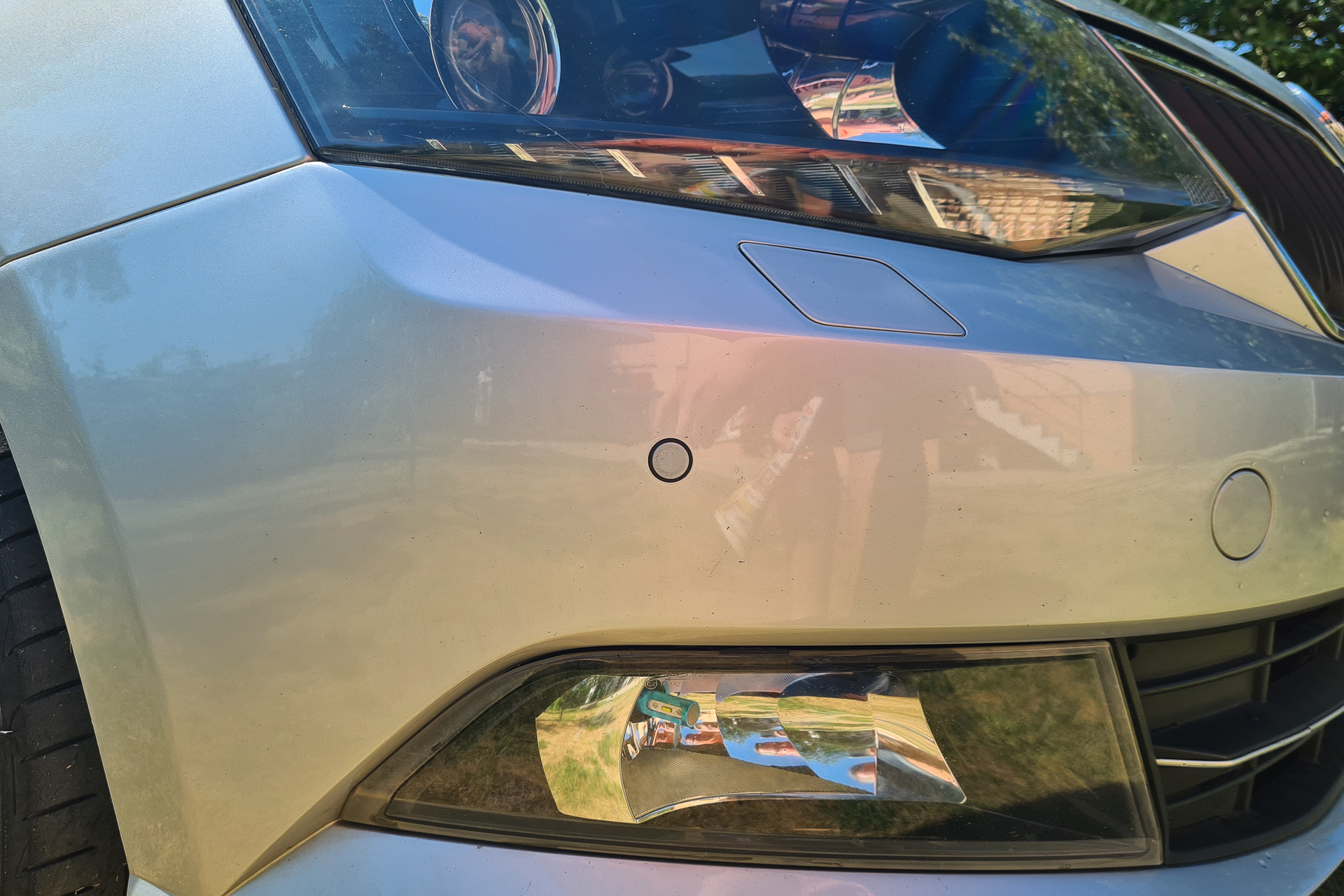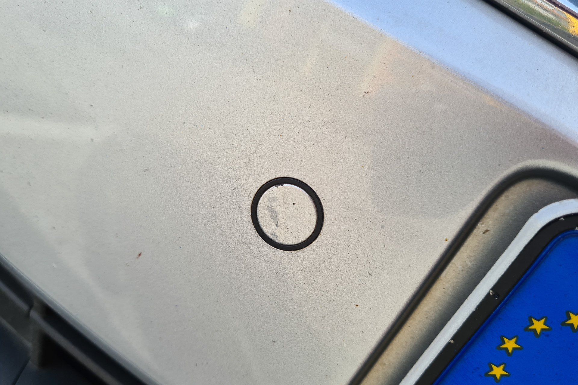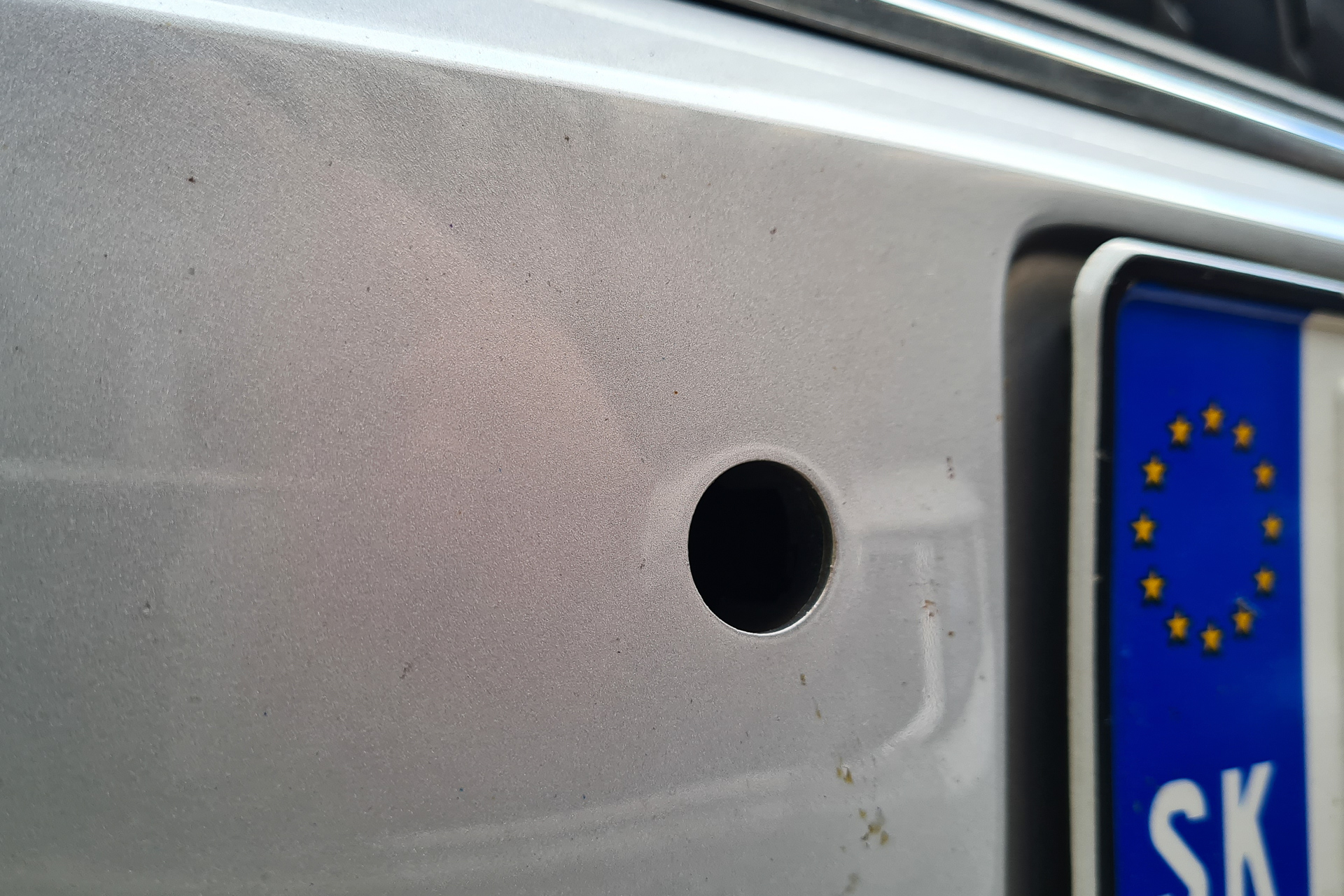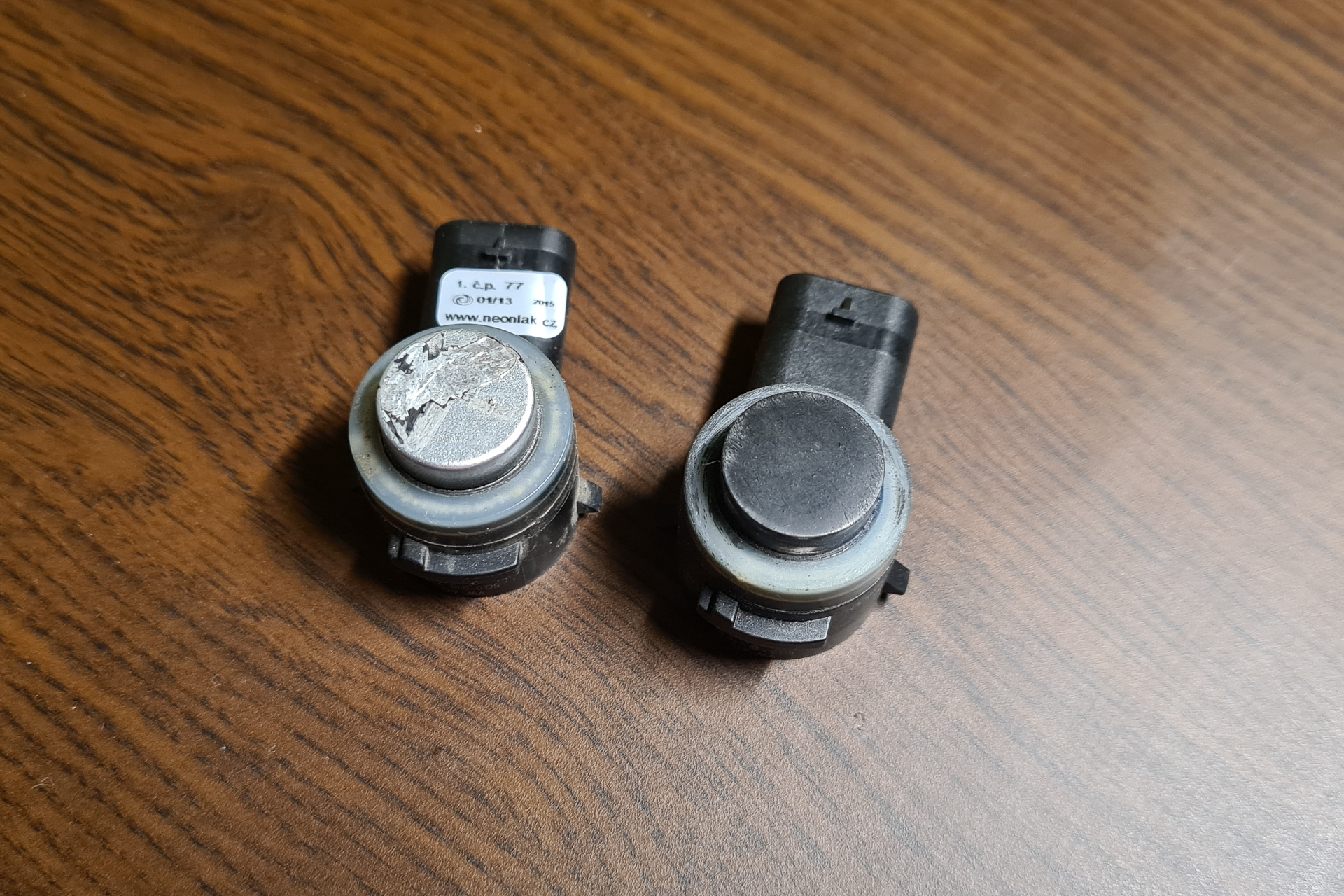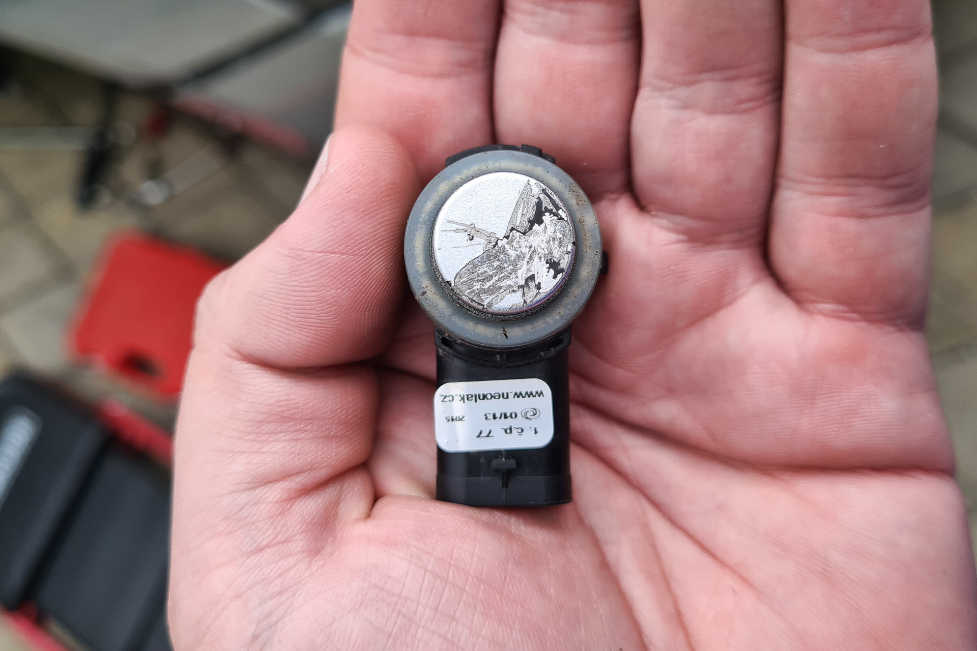 Ale nakoniec sme riešili iný problém. Pár dní pred termínom nám konečne trochu popršalo a voda sa asi zase dostala niekde, kde nemala. Zblbol predný senzor a začal pípať pri každom zastavení auta, na každej križovatke a v každej kolóne. Farba na senzore sa začala odlupovať už pred vyše rokom, pupenec na senzore zvládol minimálne dve zimy a až teraz sa objavili prvé problémy.