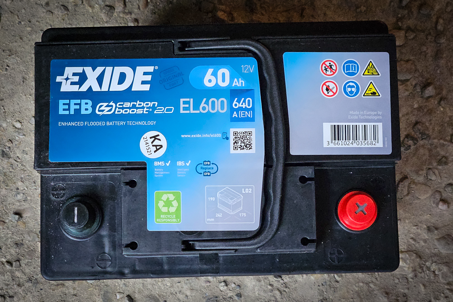 V pondelok ráno cesta do práce autobusom a takmer celý deň sme hľadali, ktorú baterku kde kúpiť. Už sme boli nalomení na AGM od Varty, ale miestna predajňa nás akosi nepresvedčila ochotou, cenou (210€) a ani dostupnosťou. Bola ešte jedna možnosť skúsiť iný obchod, ktorý podľa internetu ponúkal za 160€ s čakačkou 1-2 dni, ale nakoniec sme skončili pri osvedčenej klasike EFB konkrétne Exide EL600 60Ah/640A, za ktorú sme zaplatili po uplatnení nejakých zliav príjemných 90€. Baterku sme sa odhodlali aj rovno prehodiť a vuala, všetko úspešne nabehlo, Fabka naštartovala na prvý ťuk do štartovacieho tlačítka.