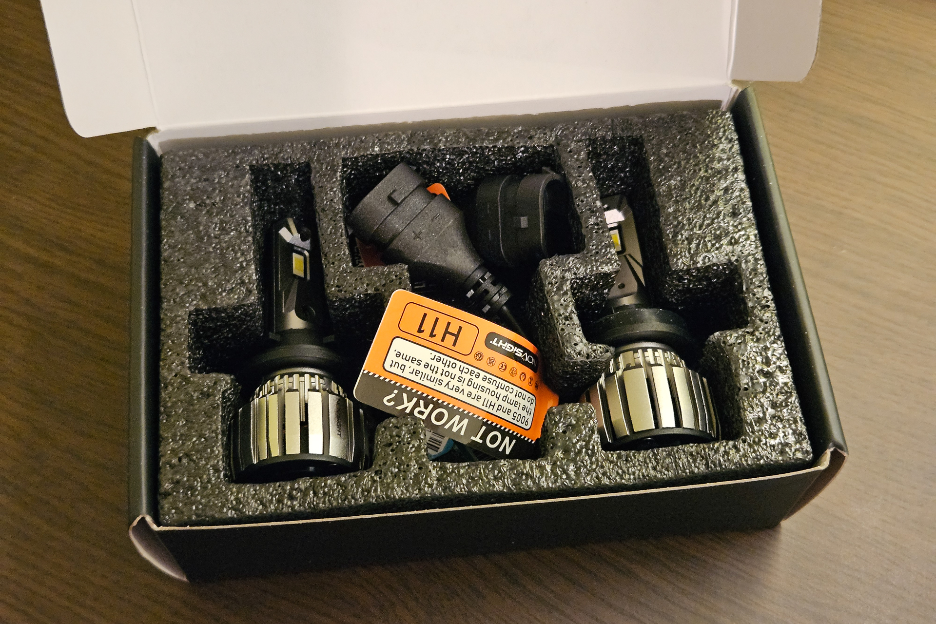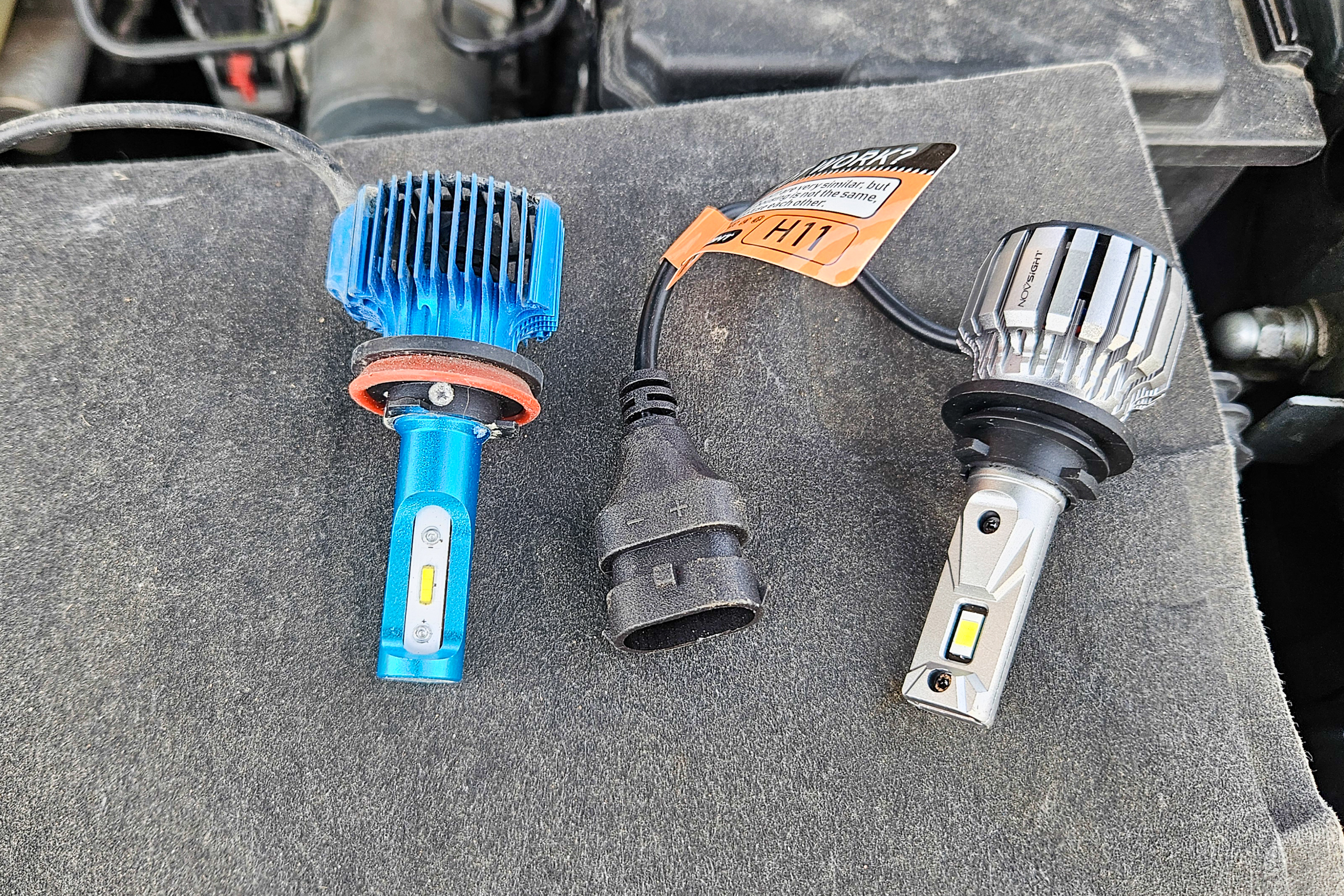Keďže pôvodné hmlovky už začali byť až otravne hlučné, nastal čas na ich výmenu. Ešte v minulom roku nám prišli z AliExpressu (link) nové LED hmlovky značky Novsight . Bohužiaľ až pri zakladaní hmloviek sme zistili, že na jednej chýba gumové tesnenie. Problém sme vyriešili tesnením zo starej hmlovky. Porovnanie nemáme zachytené, avšak subjektívne sú o niečo silnejšie.
