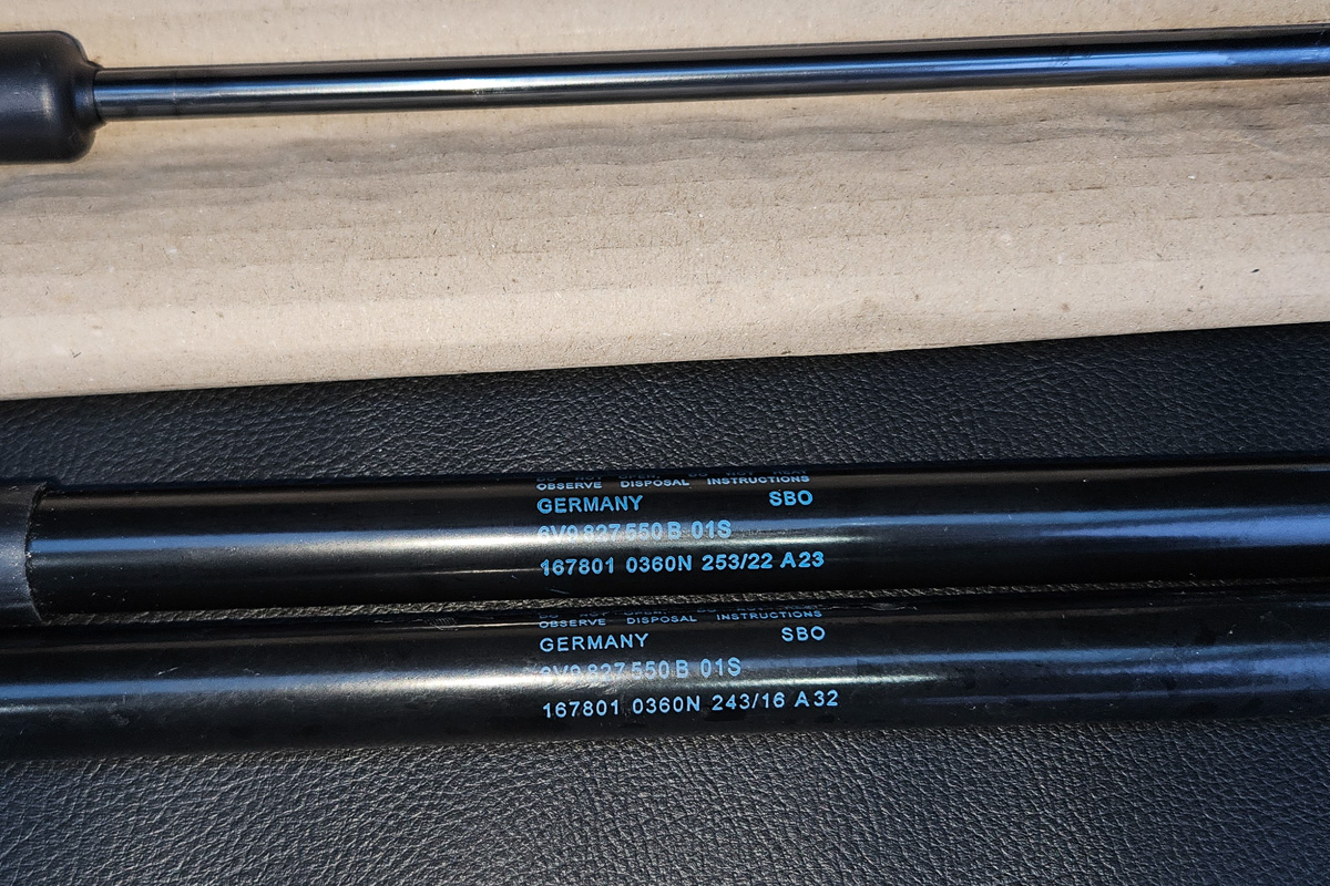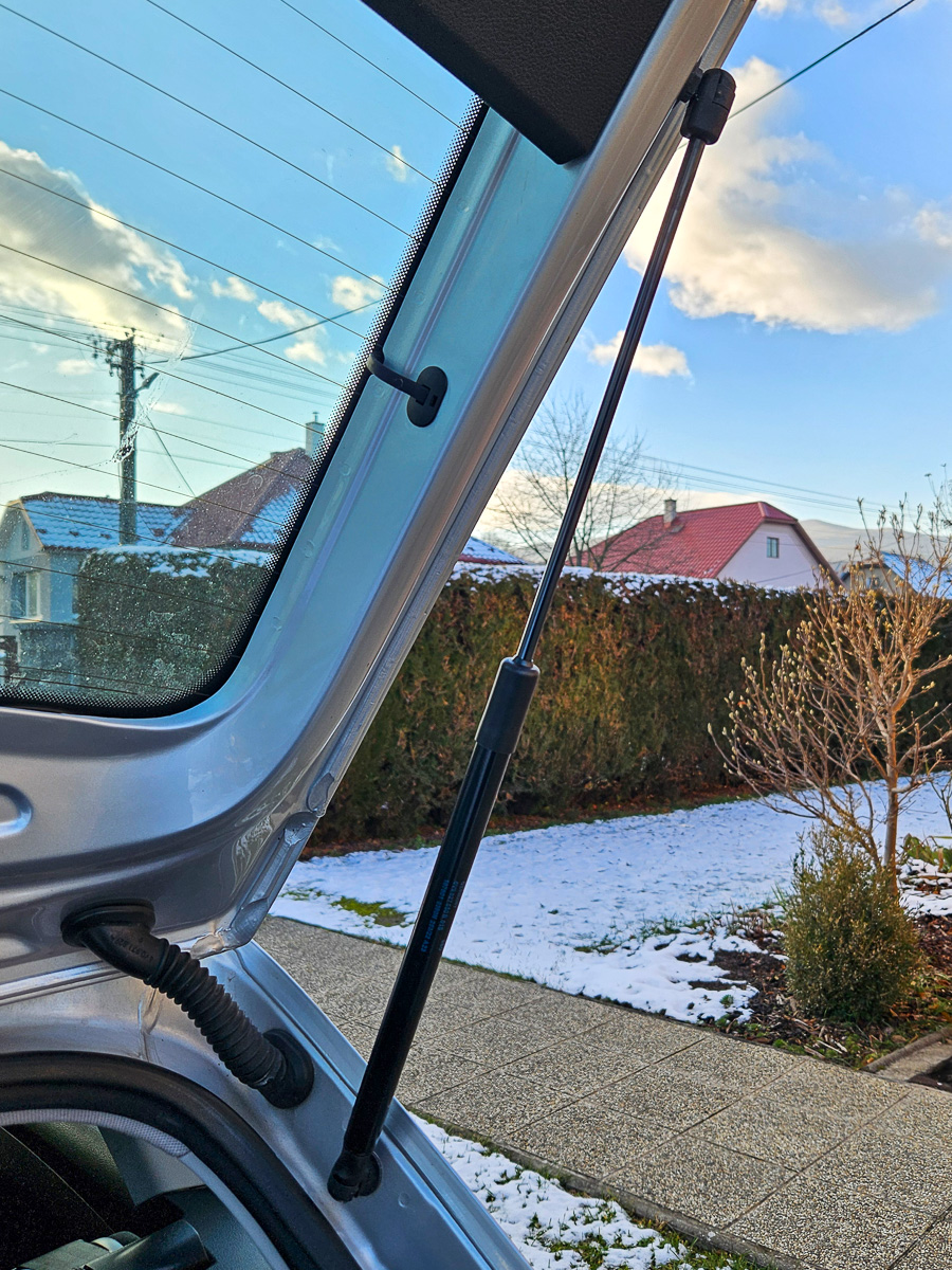 Stále niečo. Už s ochladením koncom októbra sme si všimli, že kufor sa neotvára ako by sa mal. Nuž sme si zadovážili nové plynové vzpery. Rozhodli sme sa pre originálny diel 6V9827550B za príjemných 28€/ks. Po týždni sa počasie umúdrilo a nám sa ich podarilo rýchlo vymeniť vďaka podržkufrovníkovi od pána majstra wirera. Pre porovnanie, nové vyzerajú úplne rovnako ako staré.