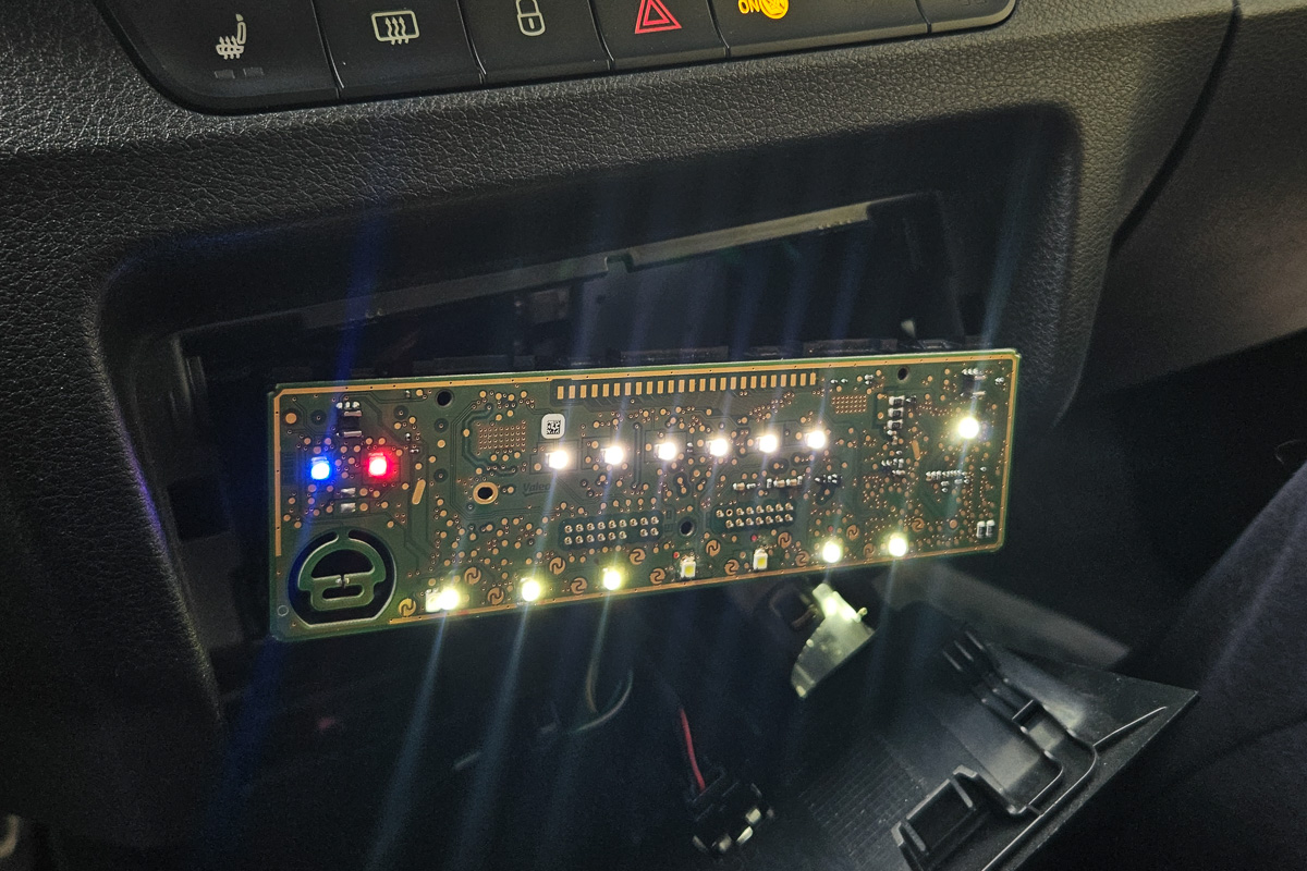 Minulý týždeň k nám zavítal prvý sneh a my sme si všimli, že dve tlačítka na paneli klimatizácie štrajkujú a nesvietia. Vydržali presne 7 rokov od zmeny podsvietenia zo zeleného na biele!