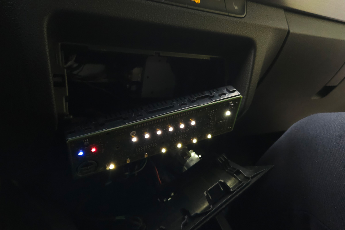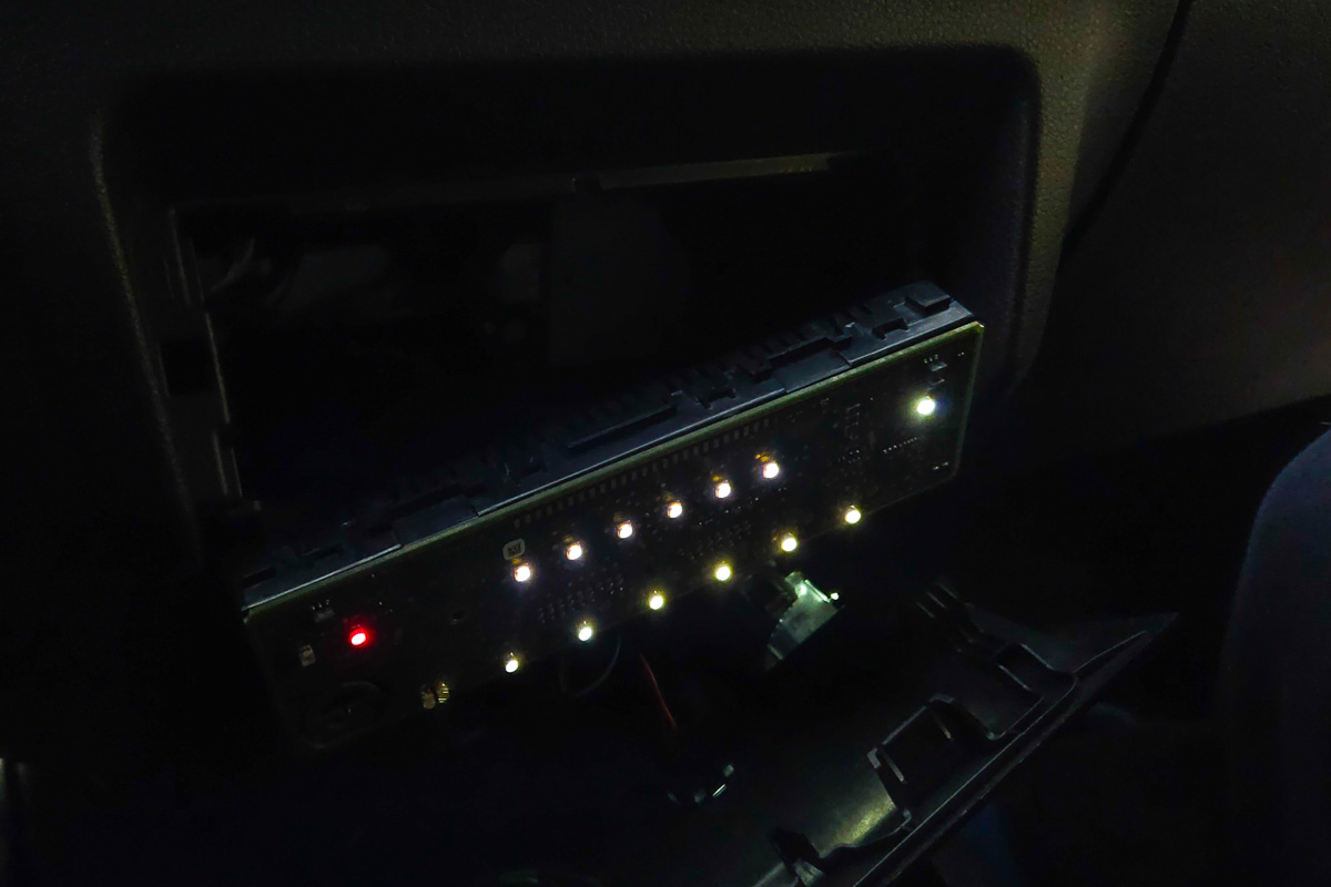 Medzitým wirer našiel inú sadu bielych diód, ktoré farebne pasovali k pôvodným diódam, tak ich napájkoval na miesto pôvodných dvoch, avšak pre zmenu prestala svietiť dióda maximálneho ofuku čelného skla.