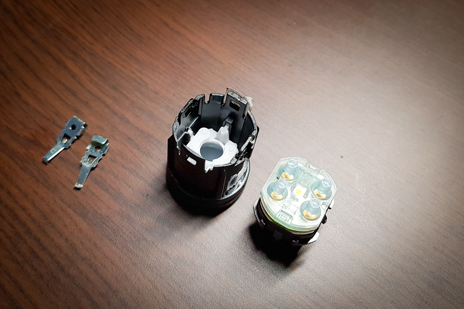 Podle servisů je to dost častá závada, že startovací tlačítko začne hůře reagovat na stisk. Obvykle až na 5tý nebo 6tý stisk a člověk neví, jestli si to tlačítko někdy nerozmyslí úplně. Stalo se to na superbu i mě, tak jsem koupil nové tlačítko a staré rozebral. Měl jsem za to, že tlačítko má mechanické spínače, ale nemá. Je to řešeno kontaktem na plošném spoji, které je spínané vodivou podložkou. Jako třeba ovladač od televize. Problém je špína na kontaktu a vodivé podložce, která brání propojení kontaktu.
