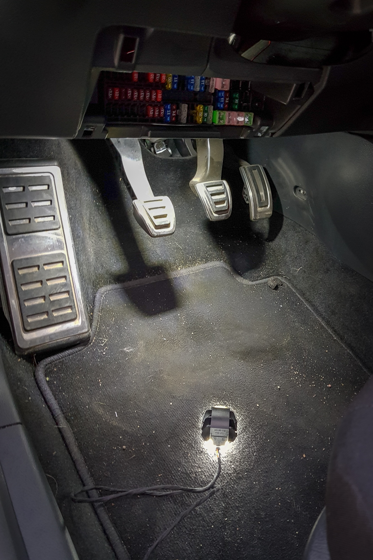 Nakoniec sa podarilo nájsť a nahodiť správne VCDS kódy, vďaka ktorým mi ledky svietia aj počas jazdy. Je to veľmi slabé osvetlenie, čiže vôbec neruší pri jazde. Navyše sa dá regulovať spolu s osvetlením palubnej dosky, pri 25% je už úplne vypnuté.
