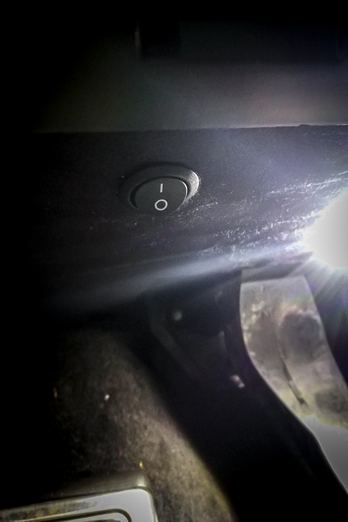 Tentokrát len krátka fotodokumentácia z montáže – bolo potrebné vybrať nejaké plasty, BCM jednotku, predné sedadlá a tak. Samozrejme som chcel aj vypínač (už šiesty takýto v aute), ktorým by som celý tento cirkus mohol vypnúť. Moja žiadosť bola splnená.