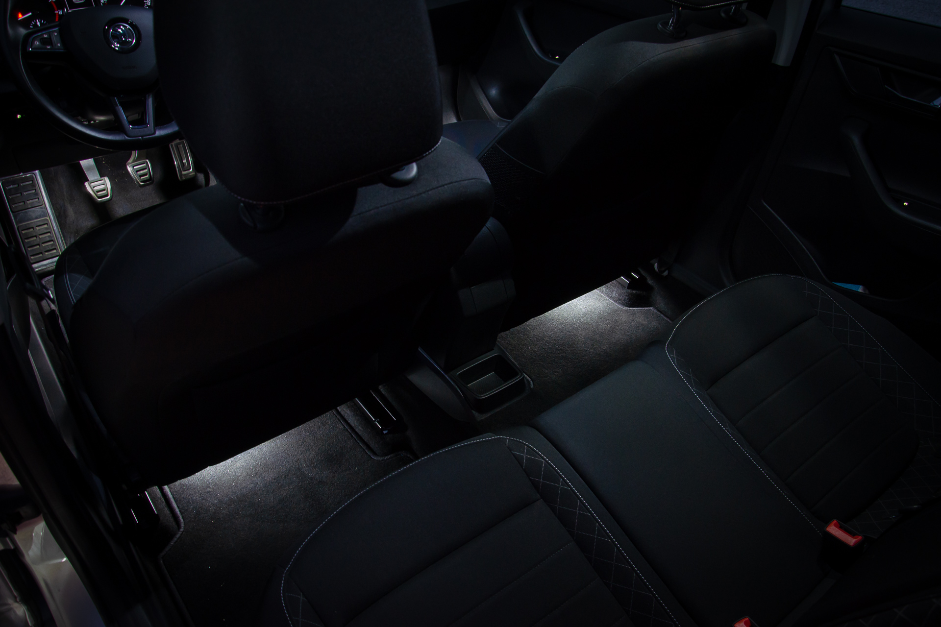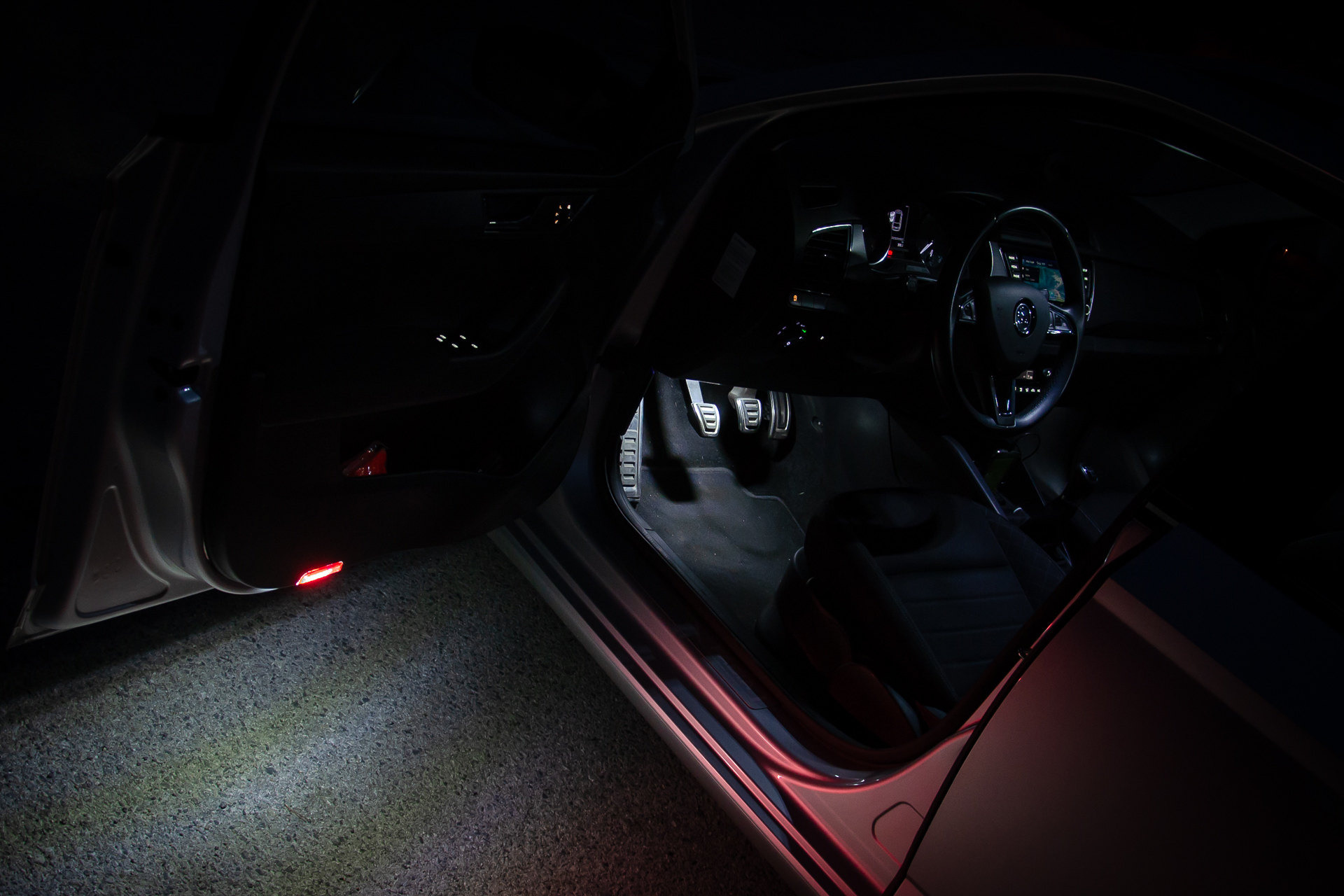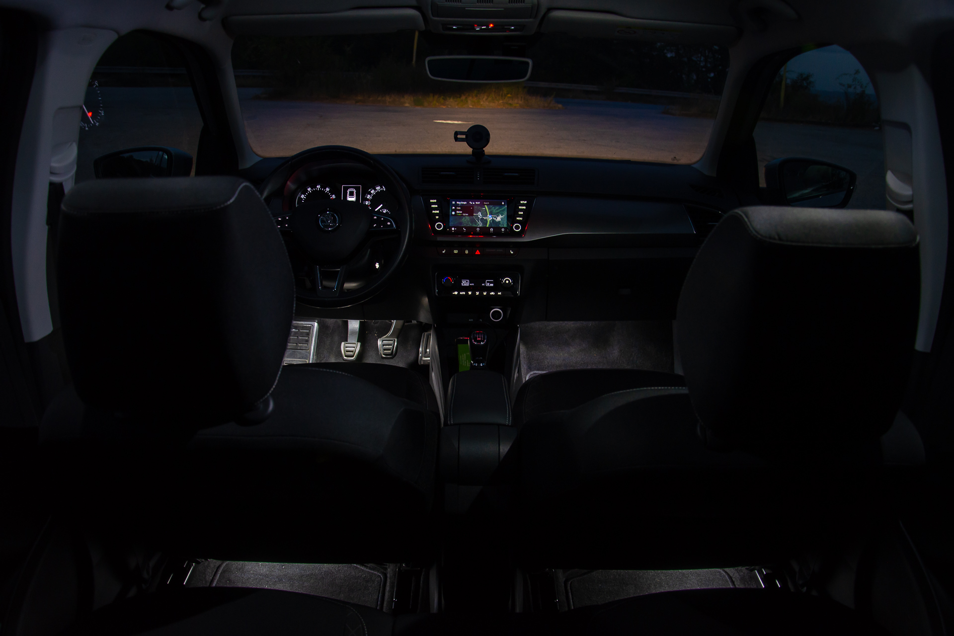 Moja pôvodná predstava bola, aby to svietilo iba spolu so stropnými svetlami so zníženou intenzitou, až keď sa otvoria dvere, aby intenzita šla na 100%. Po opätovnom zavretí dverí sa intenzita opäť zníži. Úplne vypnúť by sa mali, až keď sa vypnú stropné svetlá. Pravdepodobne moja predstava nepôjde nakódovať a preto som spokojný aj so súčasným stavom, keď to svieti iba so stropnými svetlami a iba na 100%. Počas jazdy to momentálne nechcem mať rozsvietené ani na 10%, ale či sa mi to časom nezapáči, to nevylučujem. Je tam však nejaký problém s kódovaním, aby to svietilo so zapnutým zapaľovaním so zníženou intenzitou, ako to má aj wirer vo svojom aute. Pravdepodobne je tam nejaký problém s kódovaním kvôli štartovaciemu tlačidlu, wirer to ešte preveruje.