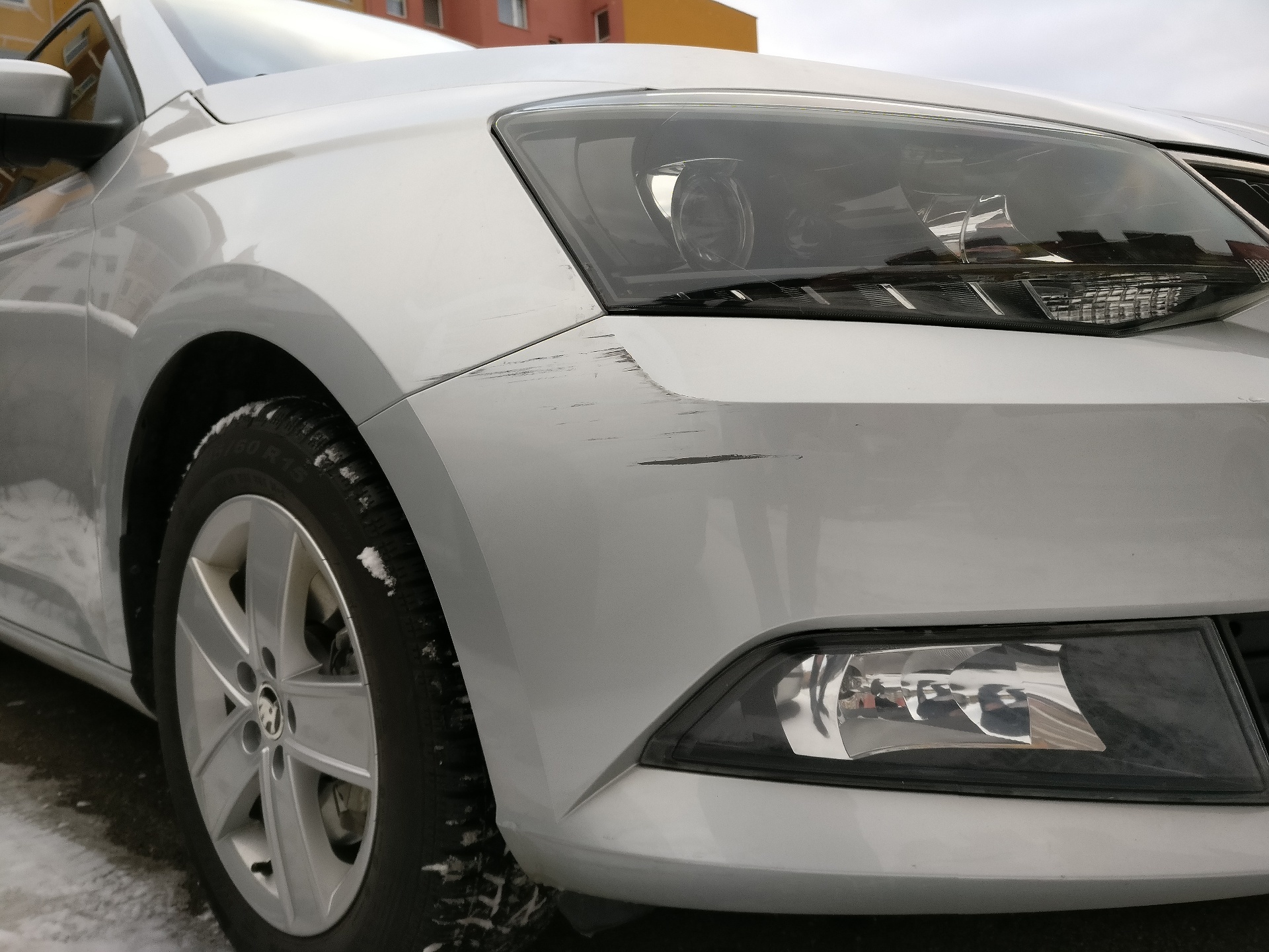 Babky stáli na ceste v strede parkoviska a vykecávali sa. Čakal som, kým sa uráčia prejsť na druhú stranu, aby som ich pri cúvaní nezrazil. A potom som rýchlo-rýchlo….. a tu zrazu jeden z najhorších zvukov aké človek môže počuť. Pozeral som iba dozadu a nie aj dopredu a tak som si nevšimol jednu polorozpadnutú Feliciu. Výsledkom je šuchnutý celý pravý predný roh: nárazník, blatník, svetlo.