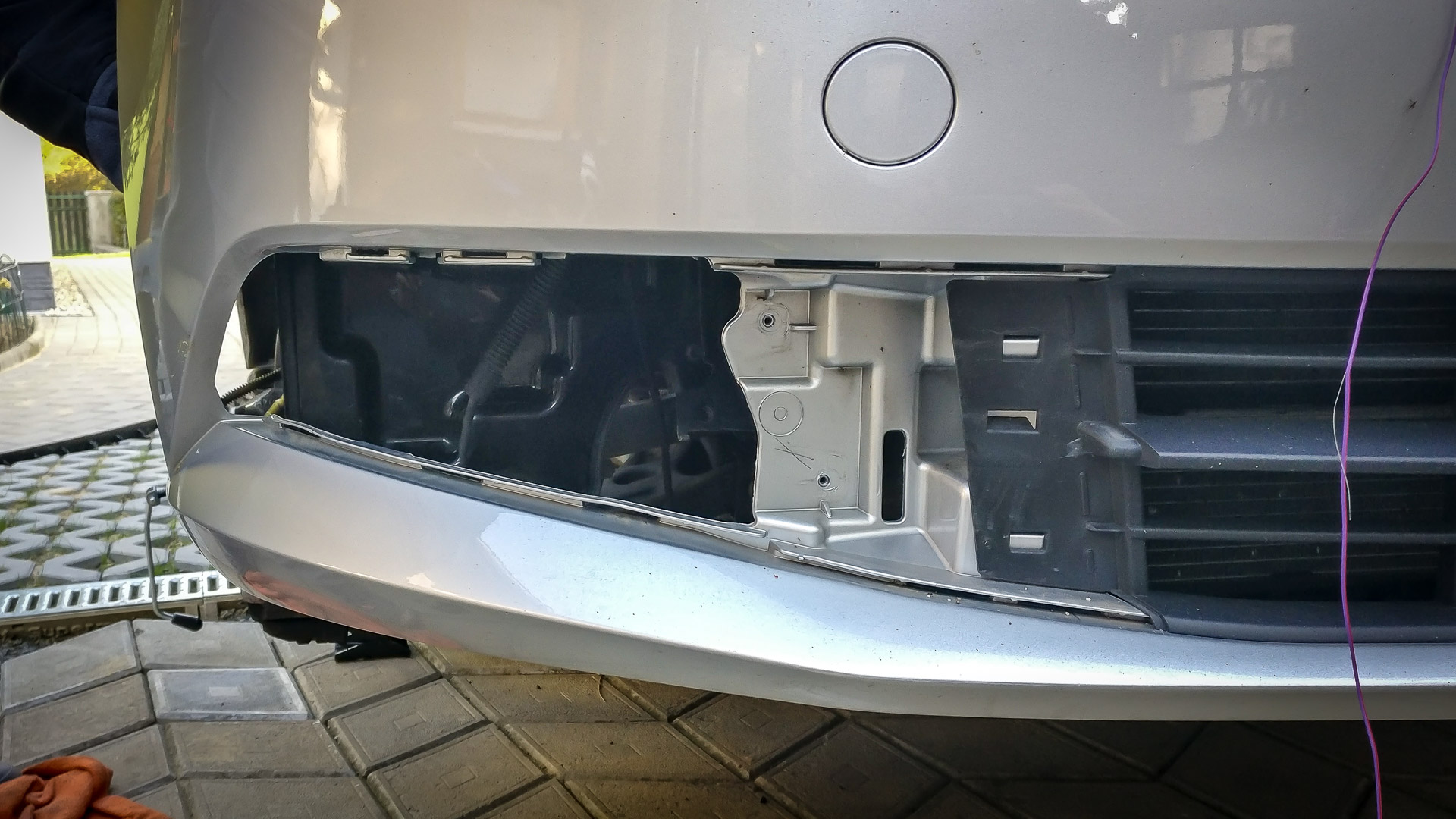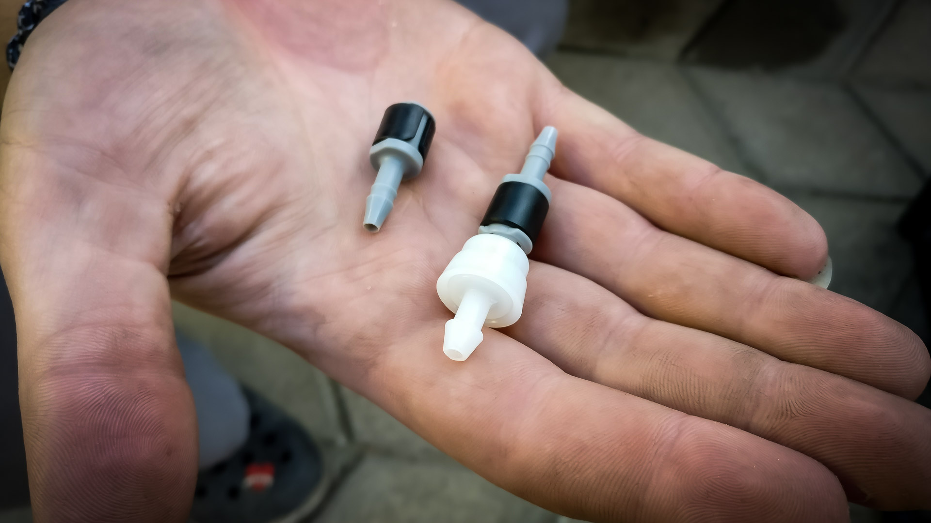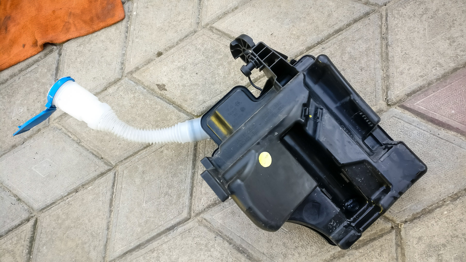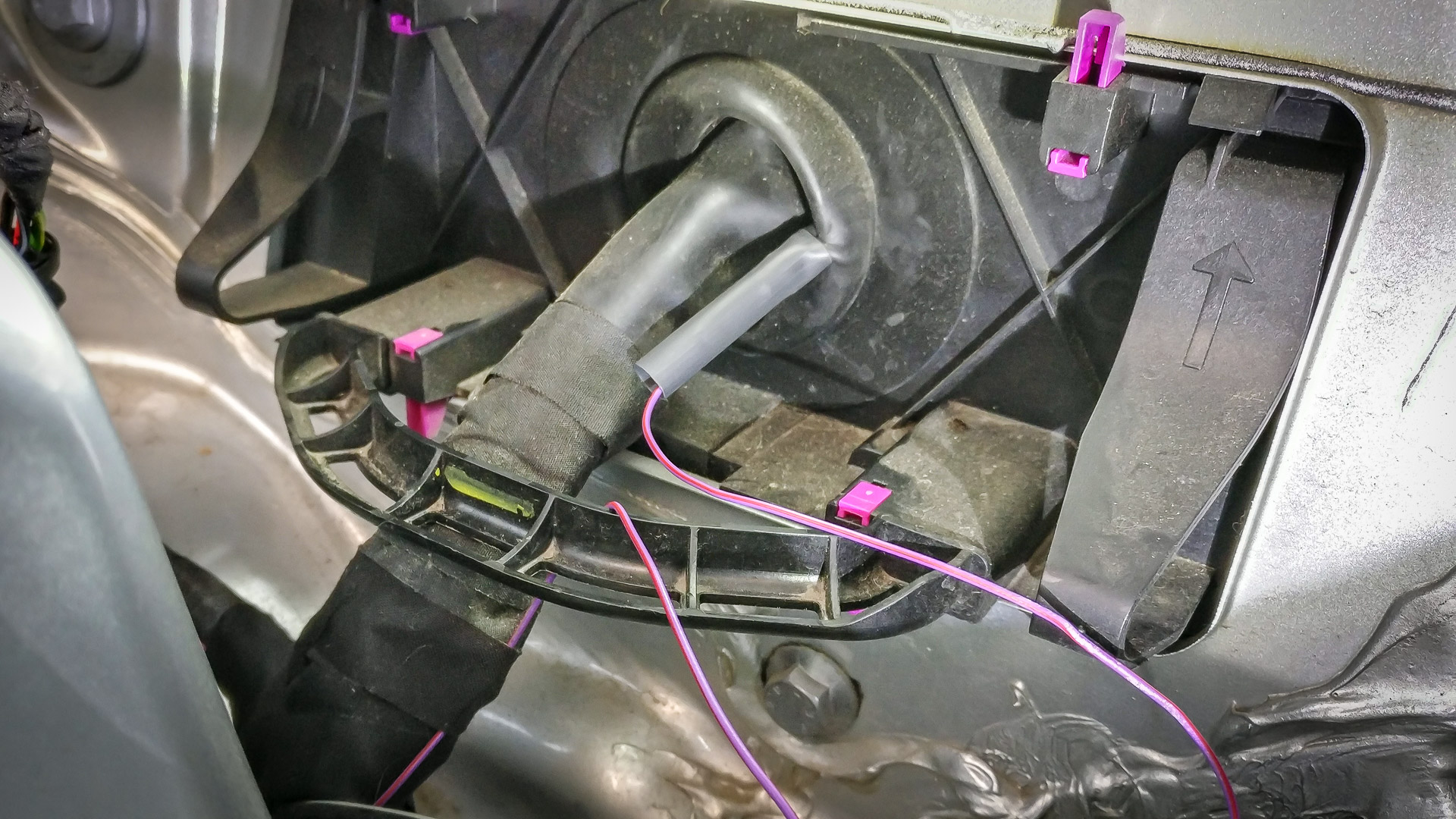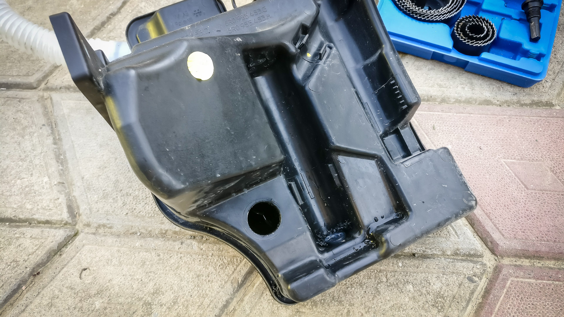 A potom sa šlo do tuhého.. vyvŕtanie diery a opätovné zapojenie nádržky už aj so spätným ventilom. Ventil som dával iba na predné ostrekovače, keďže zadný je podľa mňa v pohode.