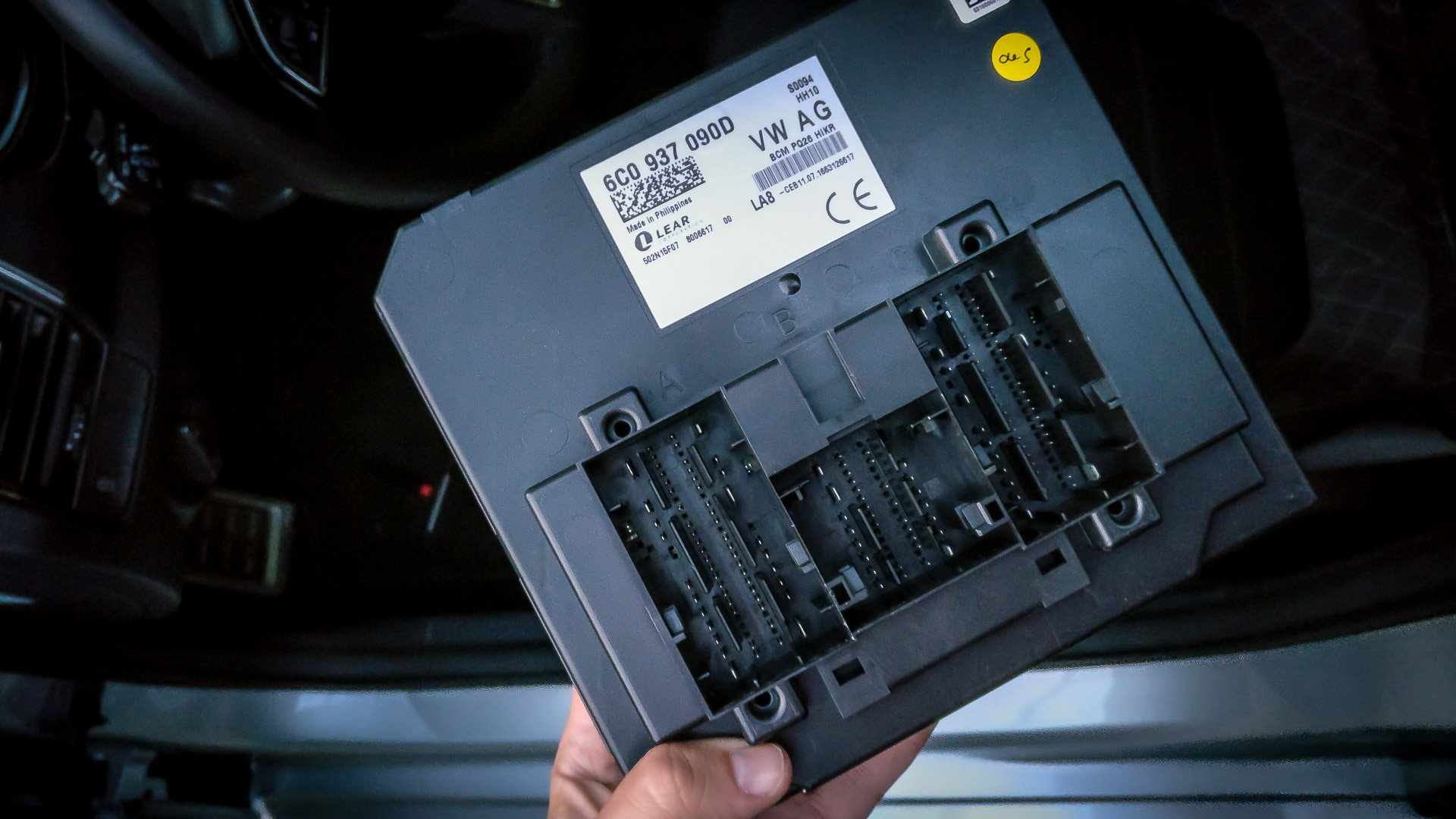 No a záverečná fáza bola v interiéri.. napojenie kábla na správnu pozícii v BCM jednotke, tá moja je inak Made in Philippines. A potom ešte nutné dokódovanie. Asi na tretí pokus sa to nakoniec podarilo a požadovaná chybová hláška konečne vybehla!