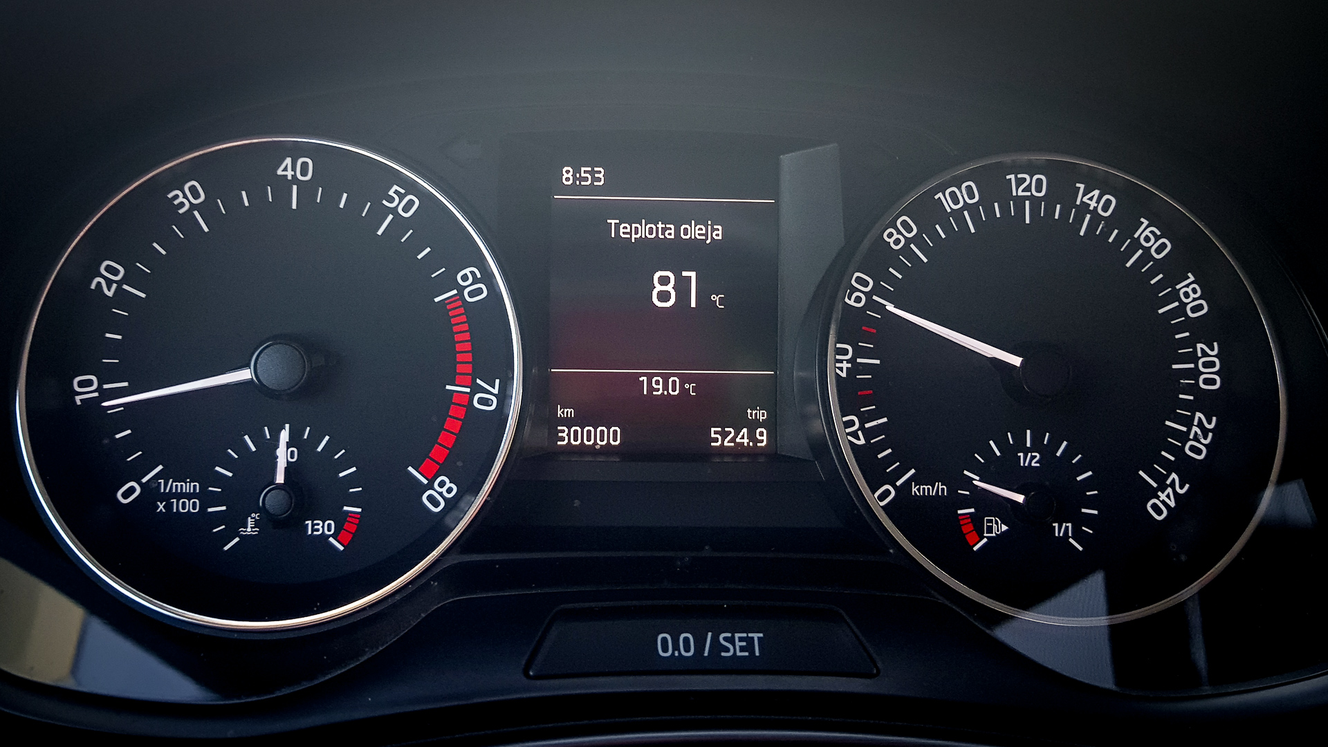 - olej vymenený – G052195M9, čiže 5W-30 LL 504.00/507.00, počas cesty domov som odstavil auto na 10min, olej mal 95°C, na mierke bol asi 1-2mm nad maximom,