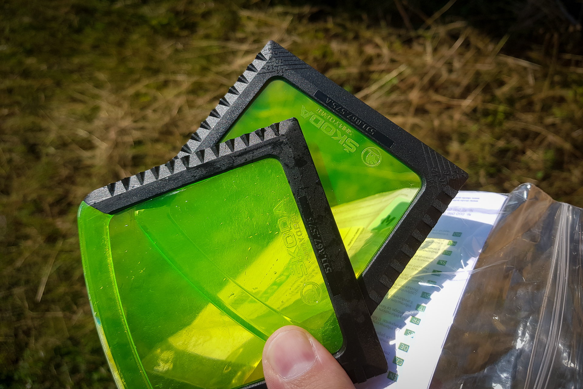 Aj keď je horúce leto, prípravy na zimu prebiehajú. Tentokrát do výbavy pribudla škrabka na ľad s mierkou hĺbky dezénu (5JJ 867 575 A). Pôvodnou škrabkou sa nedala merať hĺbka dezénu. Možno sa to niekedy zíde!