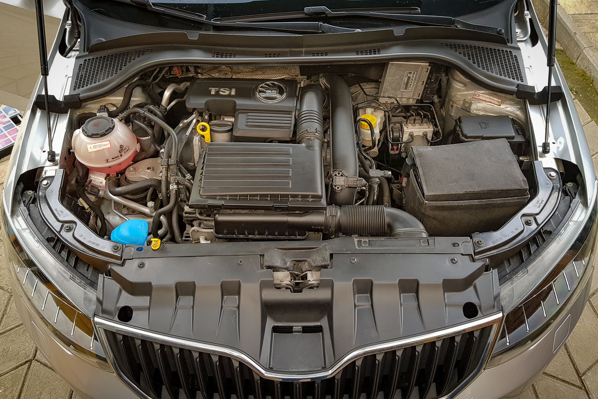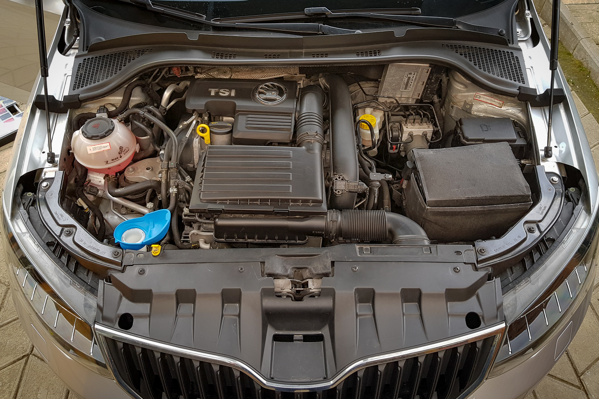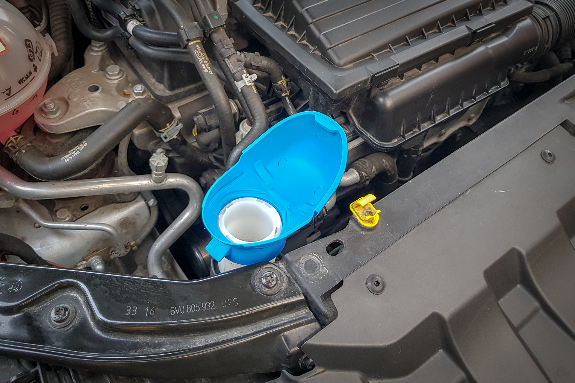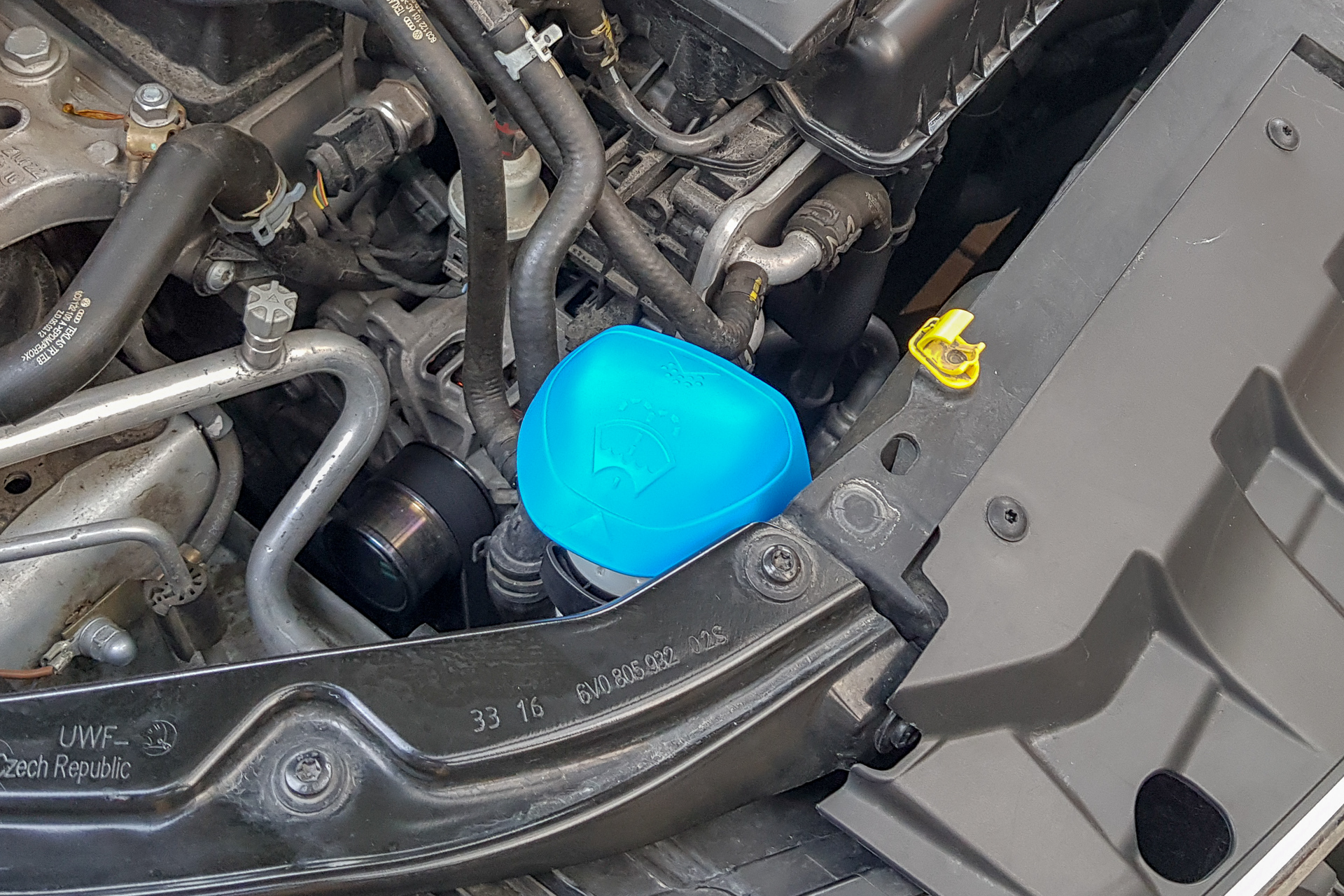 Možno je to blbosť, ale je to tam! Viečko nádržky ostrekovačov zo Scaly pasuje aj do Fabie 3. Cena symbolická, tak prečo nie? Na hrdle to drží celkom dobre, akurát pri zatváraní/otváraní sa to trochu zadiera o okraj, ale to je asi detail. Je potrebné nájsť vhodné otočenie, aby sa ľahko otváralo aj nalievalo. Časom sa to hádam vychytá.