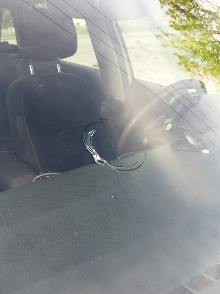 Podľa všetkého z auta odbočujúceho na vedľajšiu cestu vyletel nejaký kameň. Aj keď nechápem, ako mohol spraviť takúto puklinu, ale rana to bola poriadna, akoby odletela polovica auta. Keďže som ho už nezastihol, po informovaní sa na poisťovni som nakoniec zavolal políciu. Miestni policajti boli celkom v pohode, podľa všetkého podľa popisu spoznali majiteľa auta, pretože sa ho vybrali hľadať. Do 10 minút bol vinník zo susednej dediny na mieste nehody. Na moje prekvapenie nemal žiadny problém a pekne sme spísali záznam o nehode, taktiež policajti spravili svoj záznam. Normálne som spokojne odchádzal domov bohatší o ďalšiu byrokratickú skúsenosť!