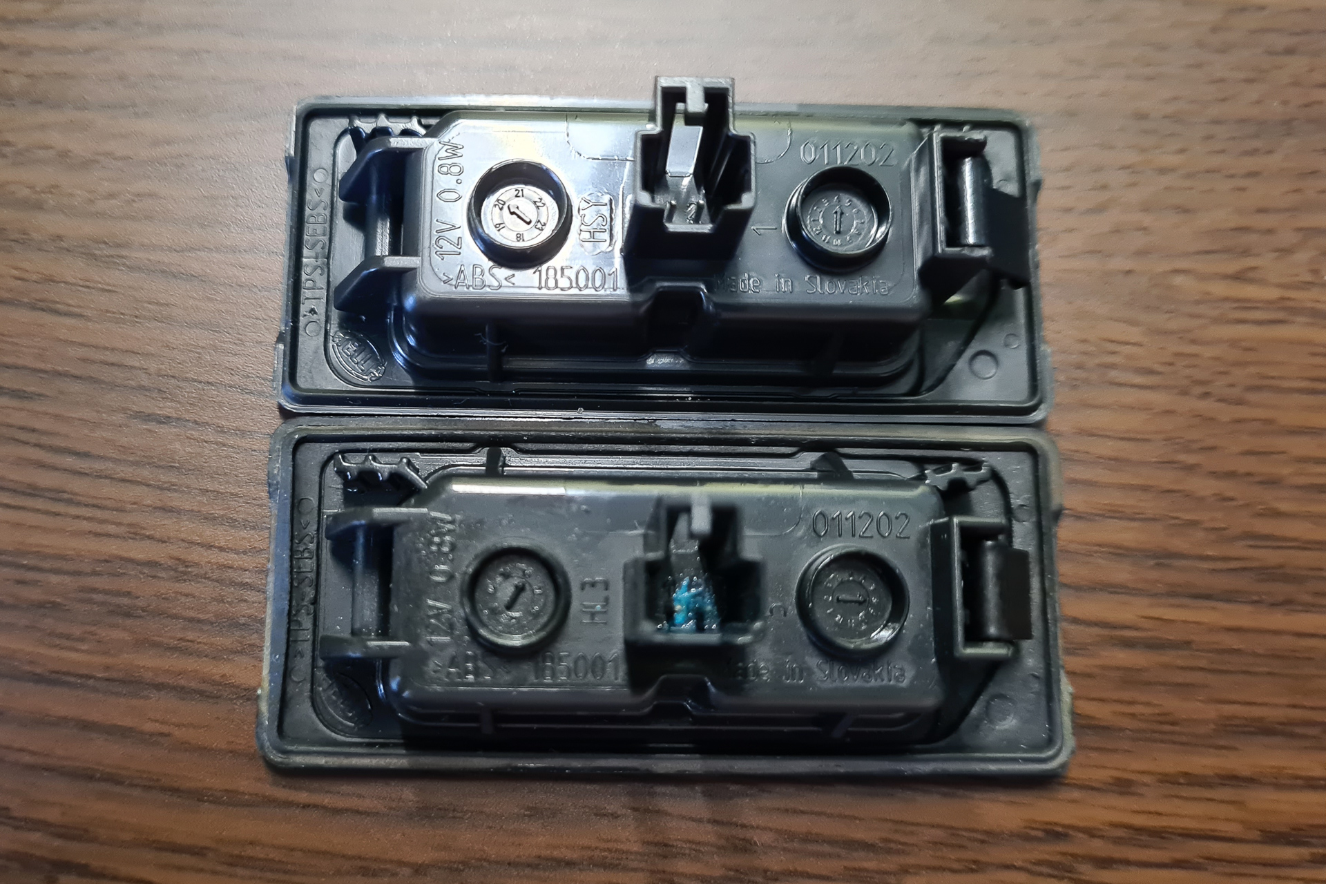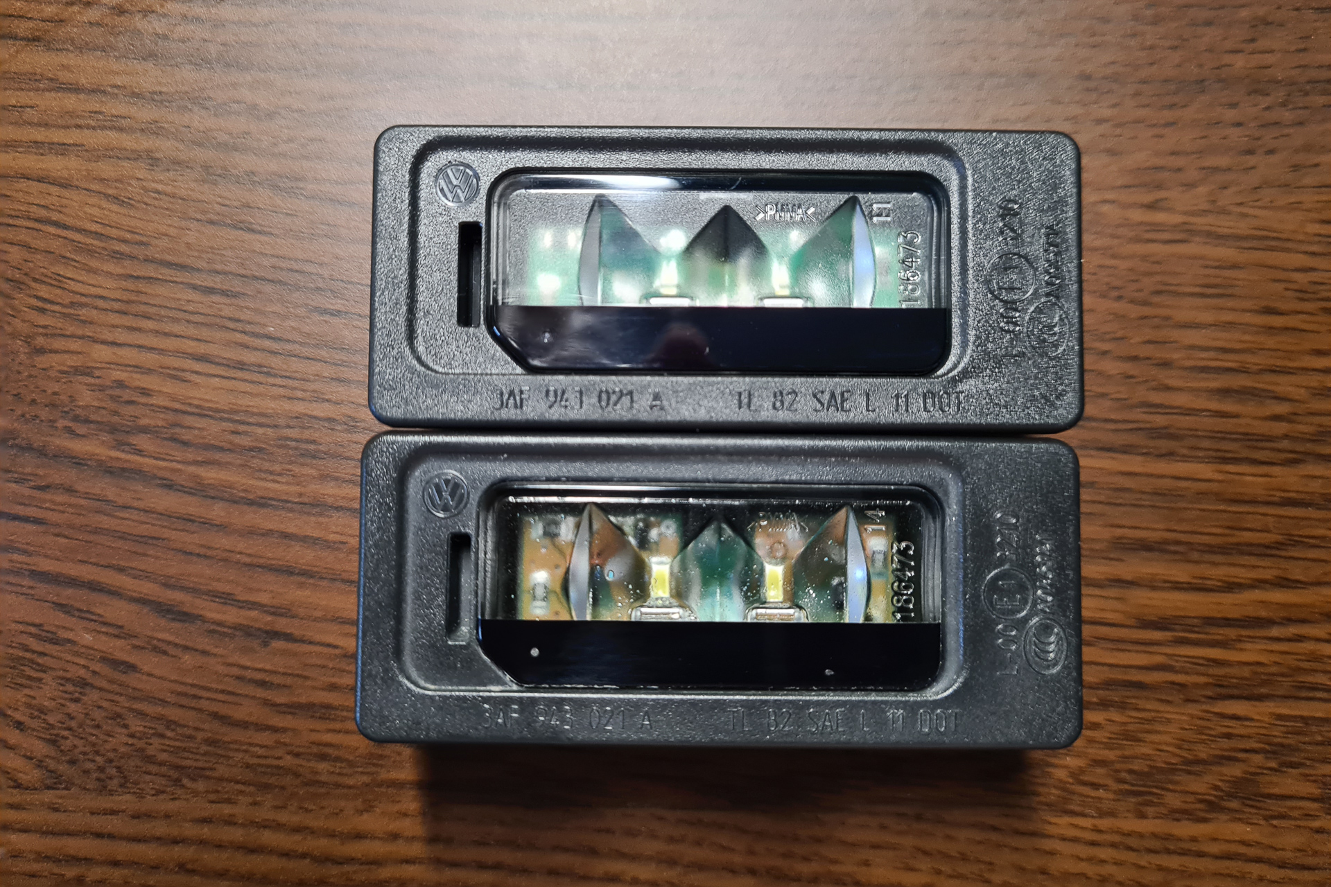 Zatiaľ som vymenil iba chybnú ledku, ale asi prehodím aj druhú. Je trochu iná, vidím tam trochu mliečne sklo, čiže bude väčší rozptyl svetla. Ešte uvidím časom, aký bude rozdiel v tme. Pod pôvodnou ledkou zatiaľ žiadna hrdza. V pôvodnom LED module však bola voda.