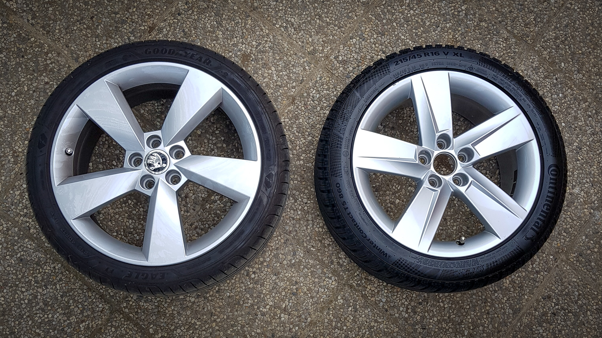 Zimný setup rovnaký ako minulú zimnú sezónu: disky Rock 16″ + zimné pneu Continental WinterContact TS860 215/45 R16.