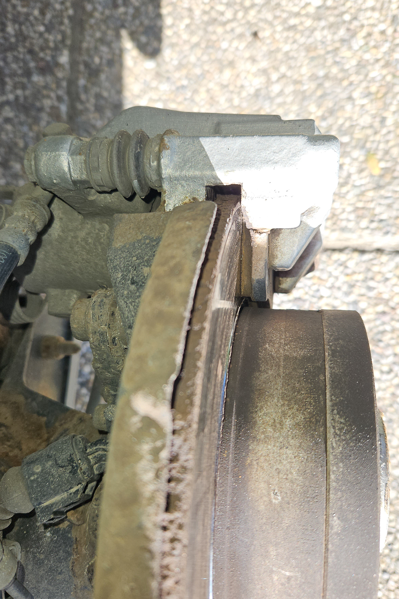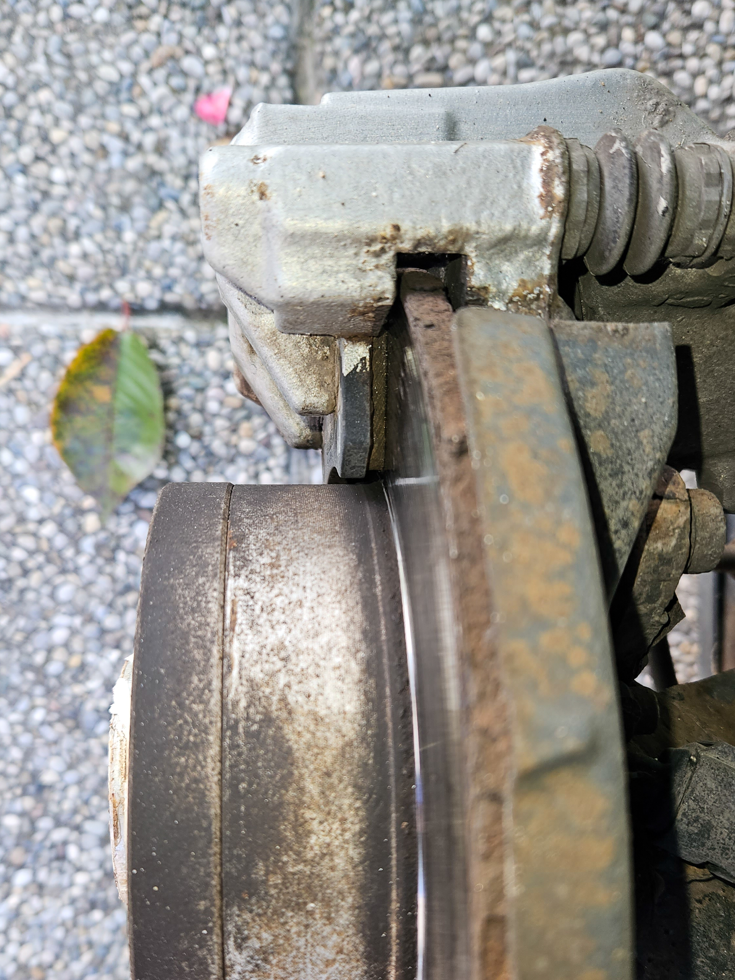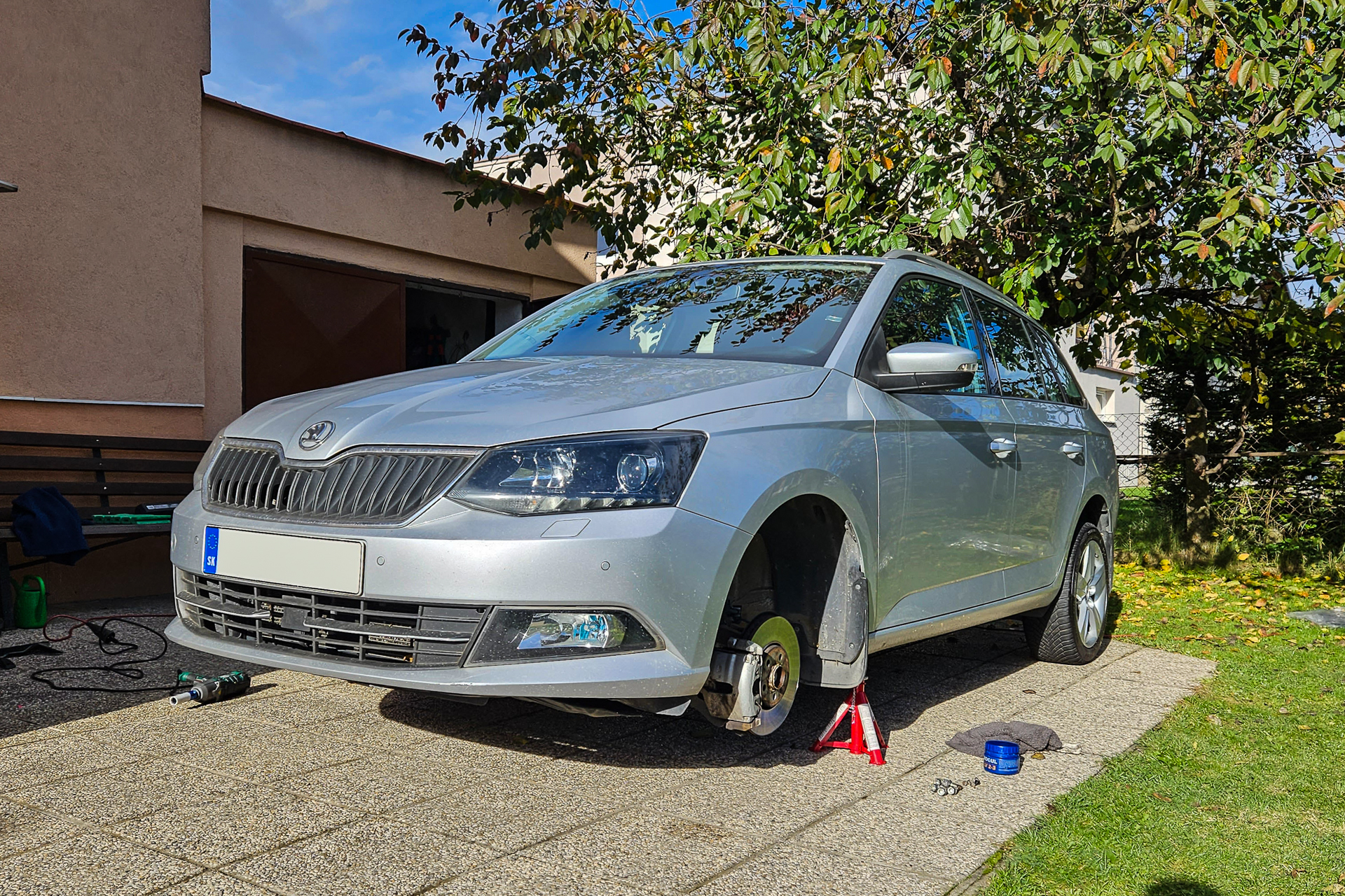 Počas prehadzovania kolies sme skontrolovali stav zadných brzdových doštičiek, na ktoré sme dostali upozornenie pri nedávnej servisnej prehliadke. Do jari by ešte mohli vydržať,